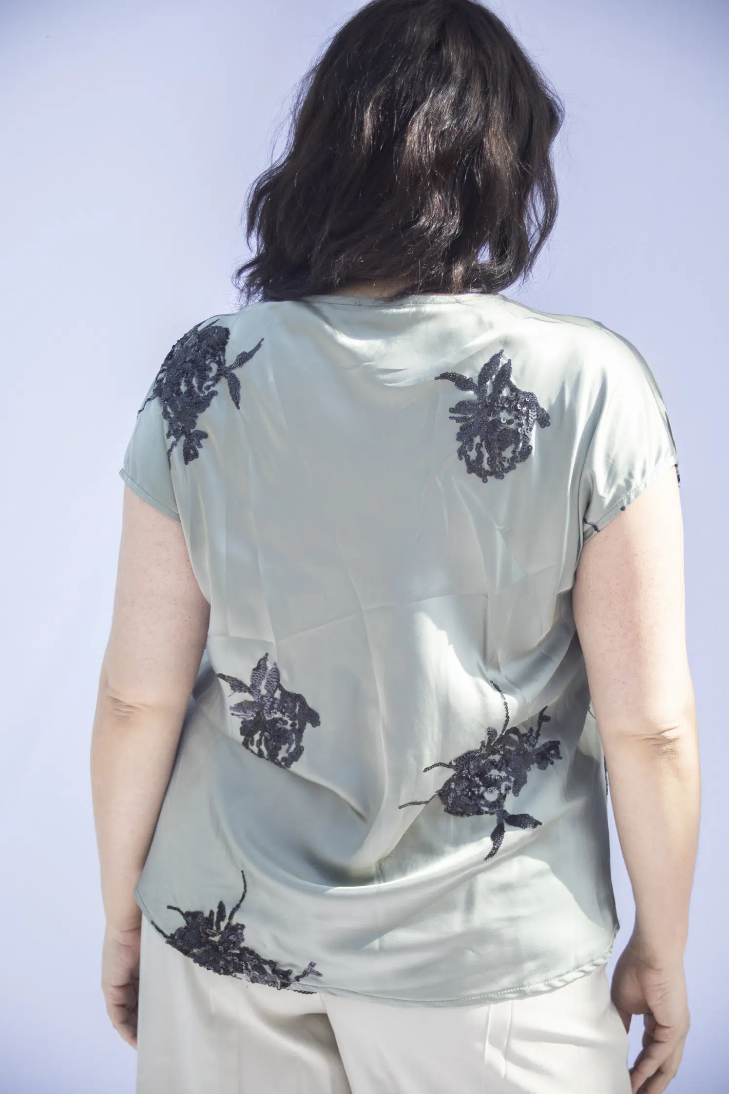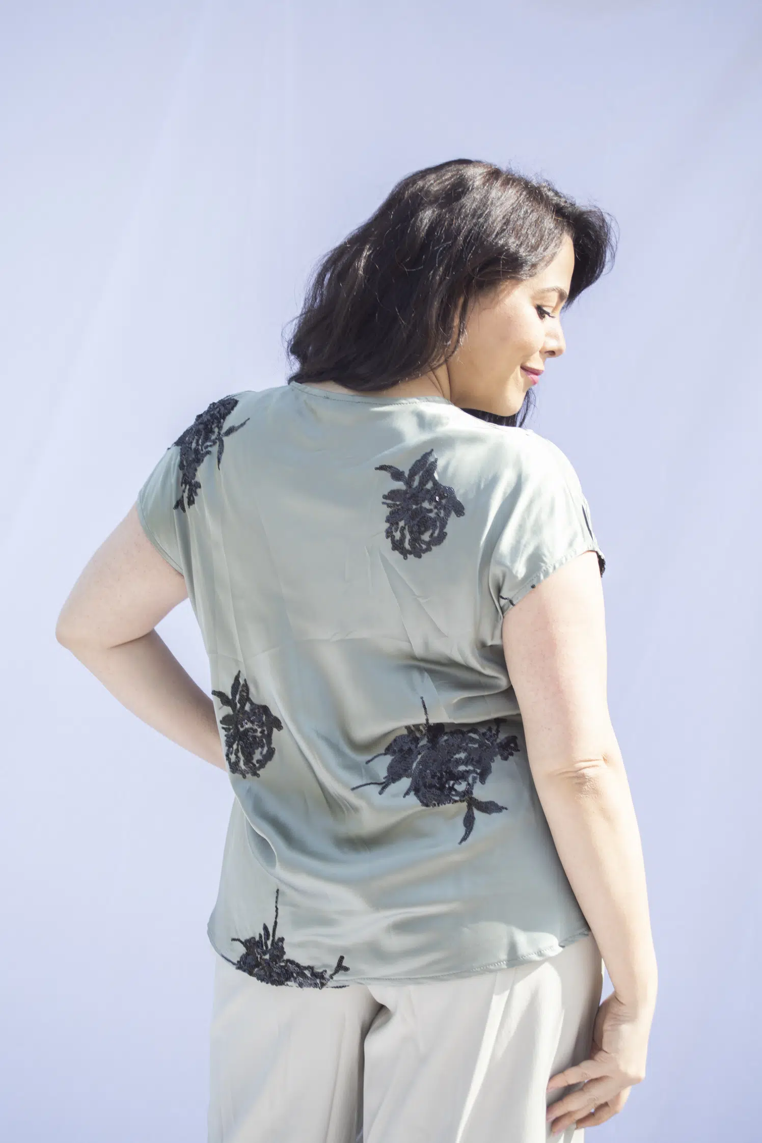 Raffinement Floral • Cette blouse grande taille chic met en valeur les plus belles formes. Elle célèbre l’élégance avec ses motifs floraux pailletés noirs • Le tissu translucide offre un jeu de texture subtil et son vert doux complète à merveille les motifs sombres • Son col discret et ses finitions soignées façonnent une pièce raffinée pour votre garde-robe Avec Cerises d’Amour, vous avez l’assurance d’avoir une garde-robe à la fois tendance, élégante, raffinée et super confortable par ce que vous êtes unique ! Guide des tailles