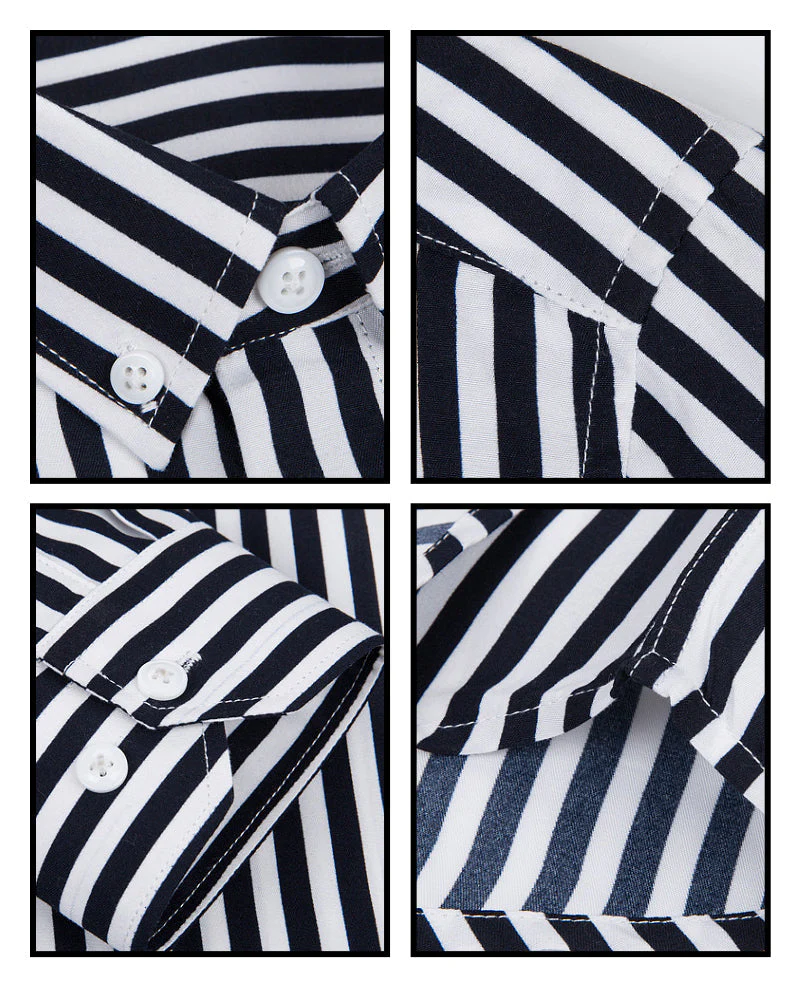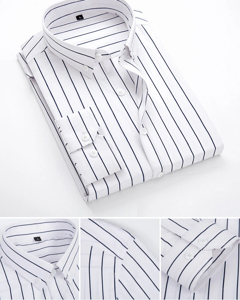Camisole pour homme – Manga larga – Corte clásico – Rayas – Puños de botones – Formalidad empresarial