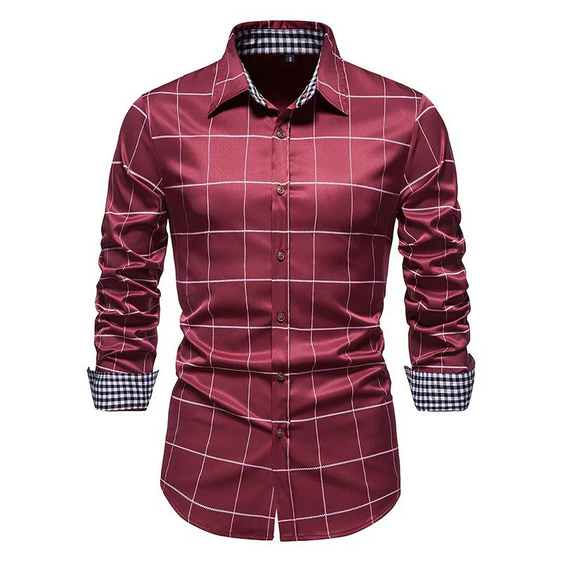 Chemise Homme à Carreaux Slim Fit à Manches Longues et Boutons – Style Décontracté Élégant