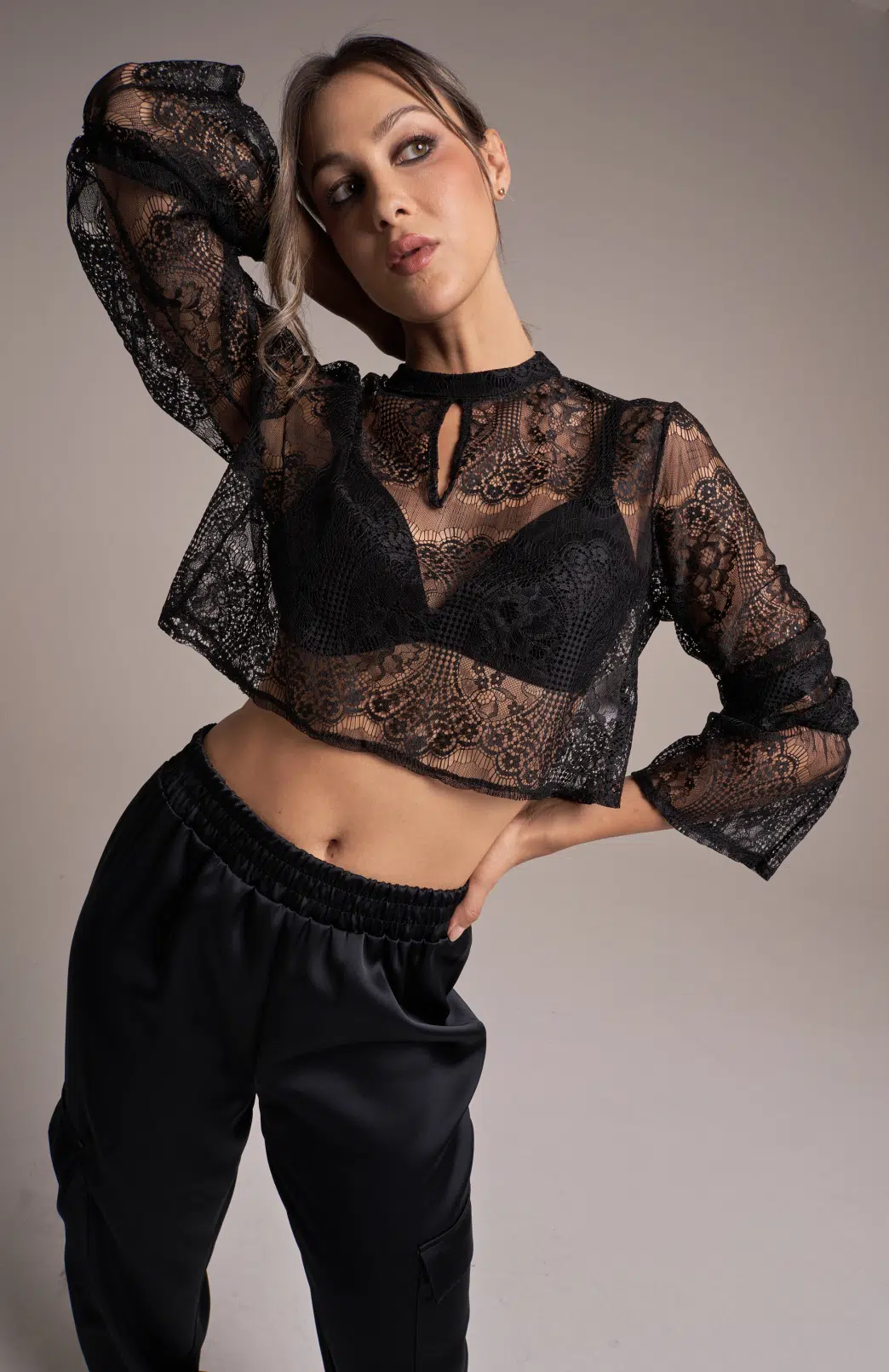 • La transparence ajoute une note de sensualité et de mystère à l’ensemble de la tenue