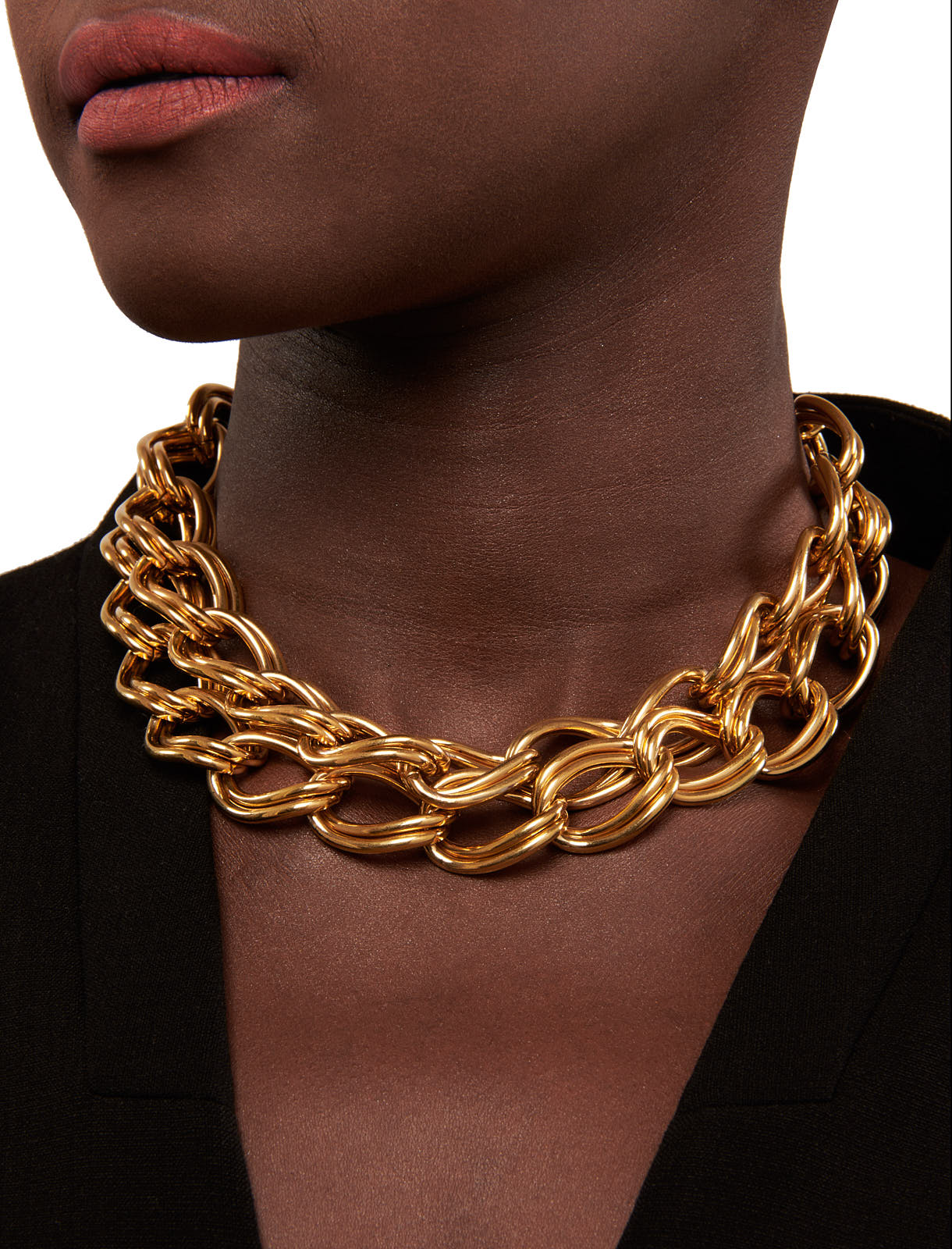 Ce joli collier en laiton doré illuminera votre visage! » Ce bijou est en laiton, recouvert d’or 24K Double chaine à gros maillons Couleur – Or Shine bright with our stunning Collier doré double – Rives! Made of high-quality brass and coated with 24K gold, you’ll love the way it catches the light on your face. The double chain with large links adds a touch of elegance and glamour. Bring out your best with this radiant necklace.