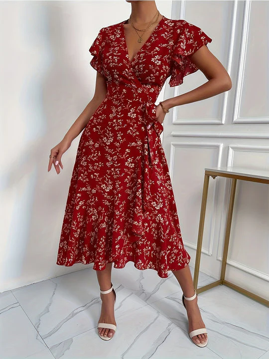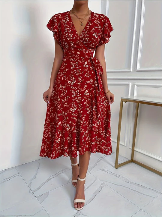 Élégante robe portefeuille fendue à imprimé floral coloré – Claudia