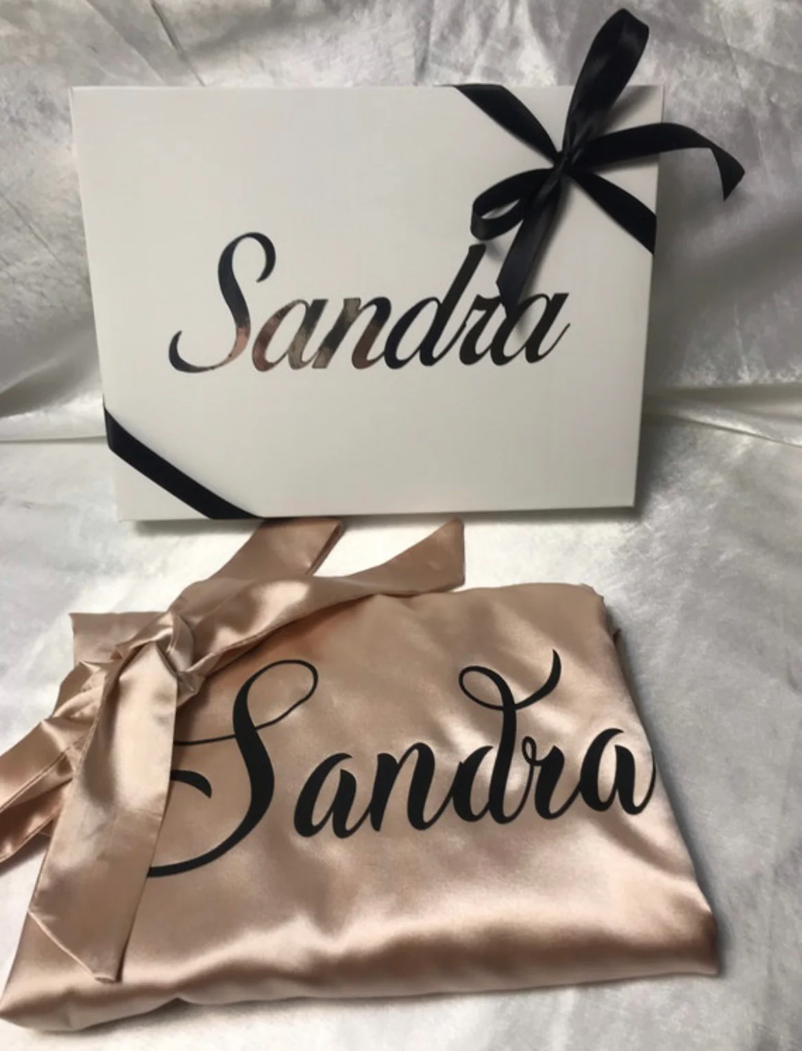 Ensemble Peignoir & Nuisette Satin Personnalisé – Cadeau Féminin Élégant et Unique