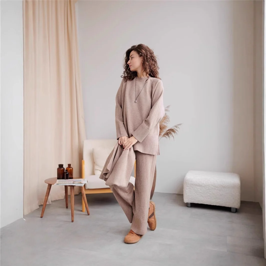 Ensemble pull tricoté et pantalon large