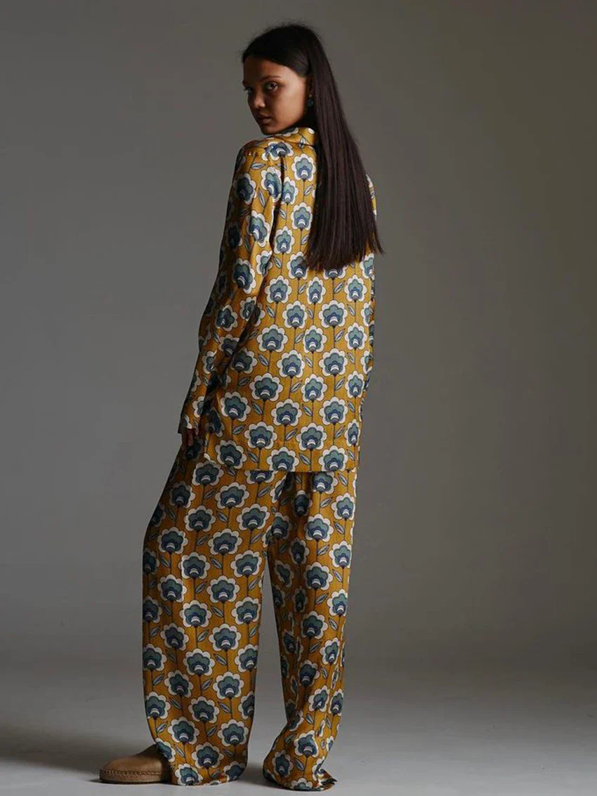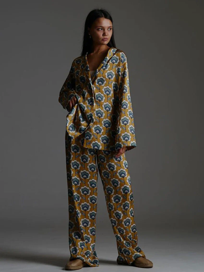 Ensemble Pyjama Femme Imprimé – Chemise à Revers & Pantalon Fluide