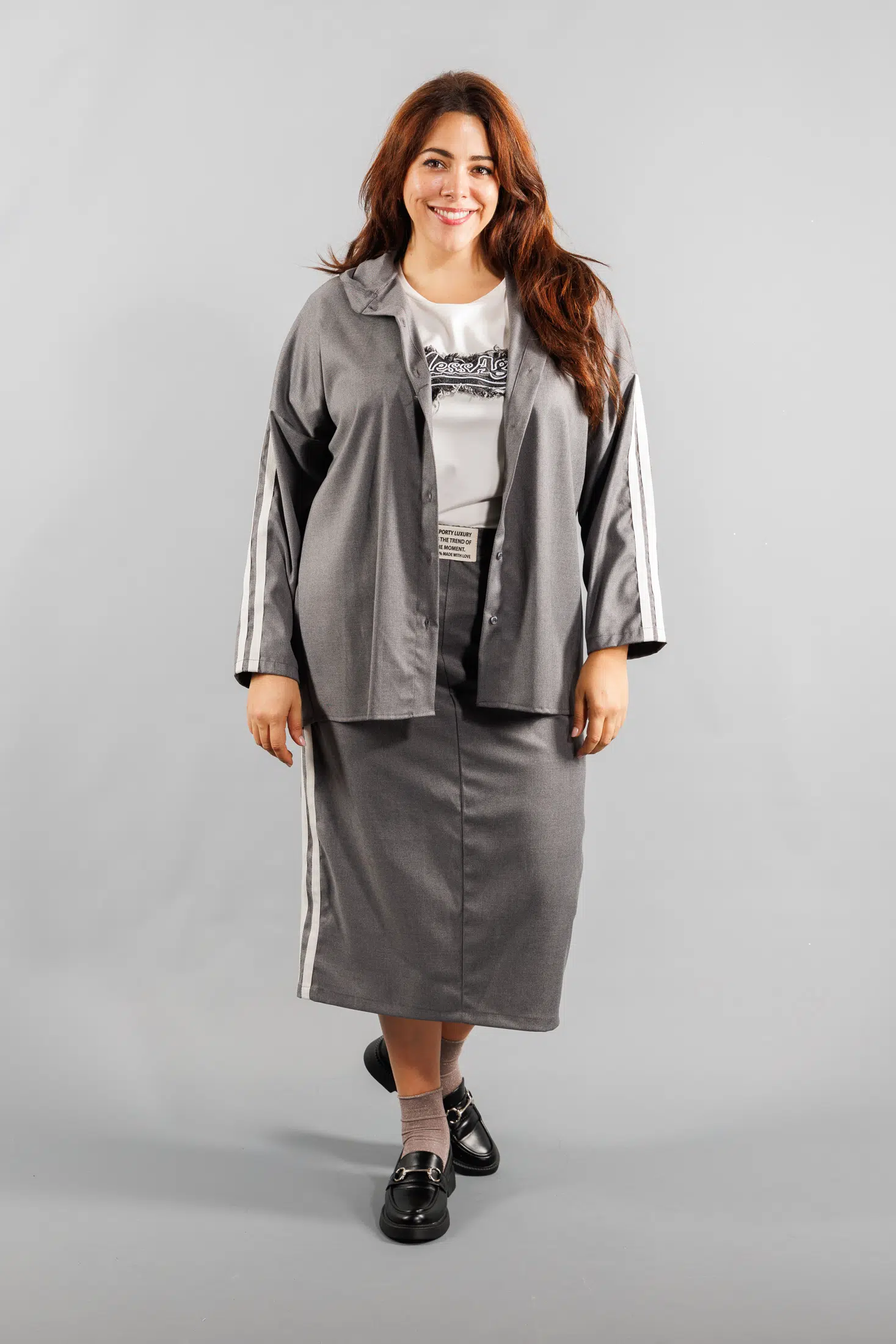 chic, associez cette jupe avec un t-shirt imprimé et des baskets pour un style décontracté et moderne. Besoin d’une tenue plus élégante ? Portez la avec un chemisier léger et des mocassins pour un effet sophistiqué et confortable. Enfin, pour un look audacieux, combinez la avec un pull oversize et des bottines, une association parfaite pour les journées plus fraîches.