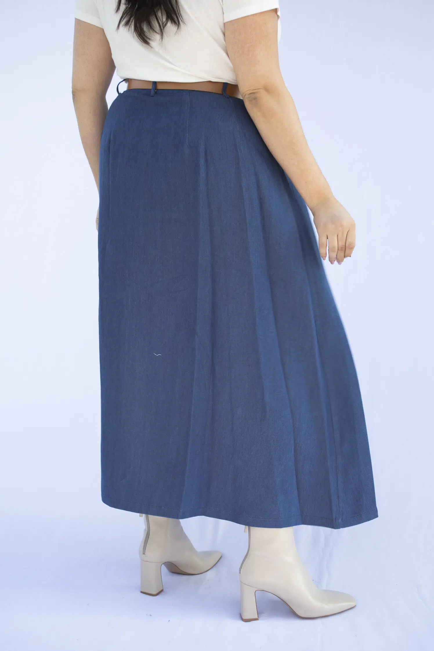 Jupe Maxi Confort pour un Effet Garanti • Cette jupe longue grande taille est la définition même du style confortable et élégant • Sa taille haute, ceinturée, souligne la silhouette, tandis que le tissu en Tencel fluide offre une belle amplitude de mouvement • La couleur bleue profonde ajoute une touche de sophistication, facile à agencer avec vos hauts préférés Avec Cerises d’Amour, vous avez l’assurance d’avoir une garde-robe à la fois tendance, élégante, raffinée et super confortable par ce que vous êtes unique ! Guide des tailles