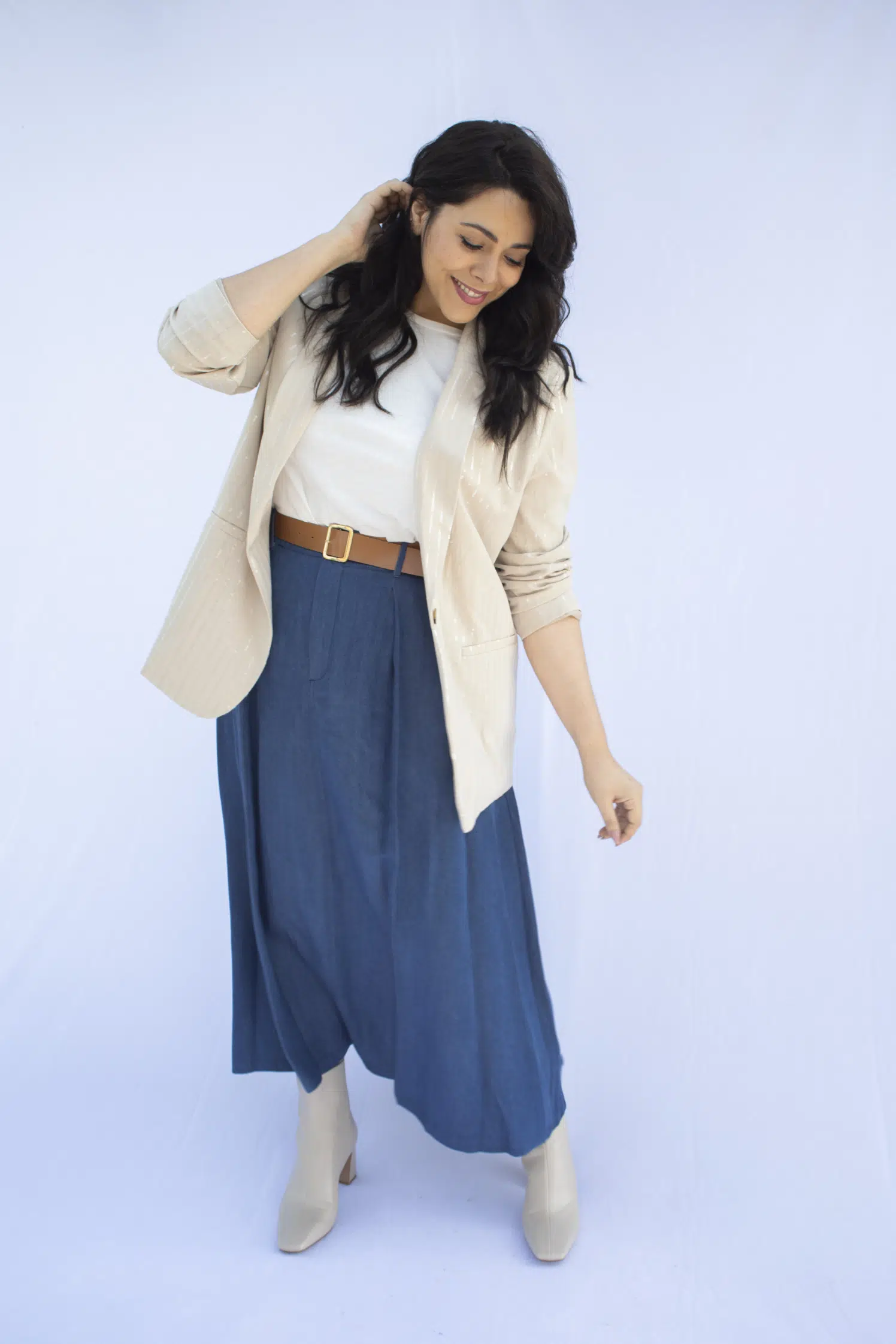 Polyvalente, elle se porte aussi bien avec des bottines pour un look automnal qu’avec des sandales en été. Ajoutez un chemisier léger pour une touche de légèreté ou un pull en tricot pour un confort douillet. Cette jupe longue est idéale afin de créer des tenues qui marient aisance et raffinement.