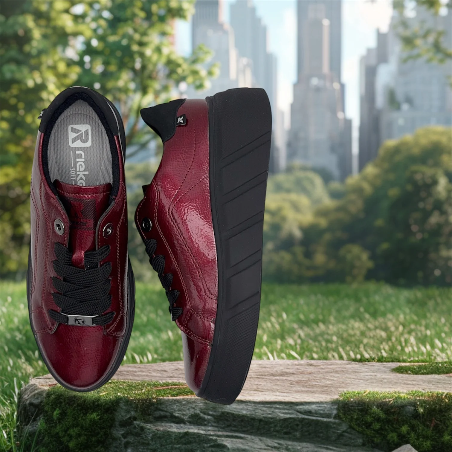 Basket fantaisie rouge bordeaux vernis Largeur F 1/2 doublure textile éponge