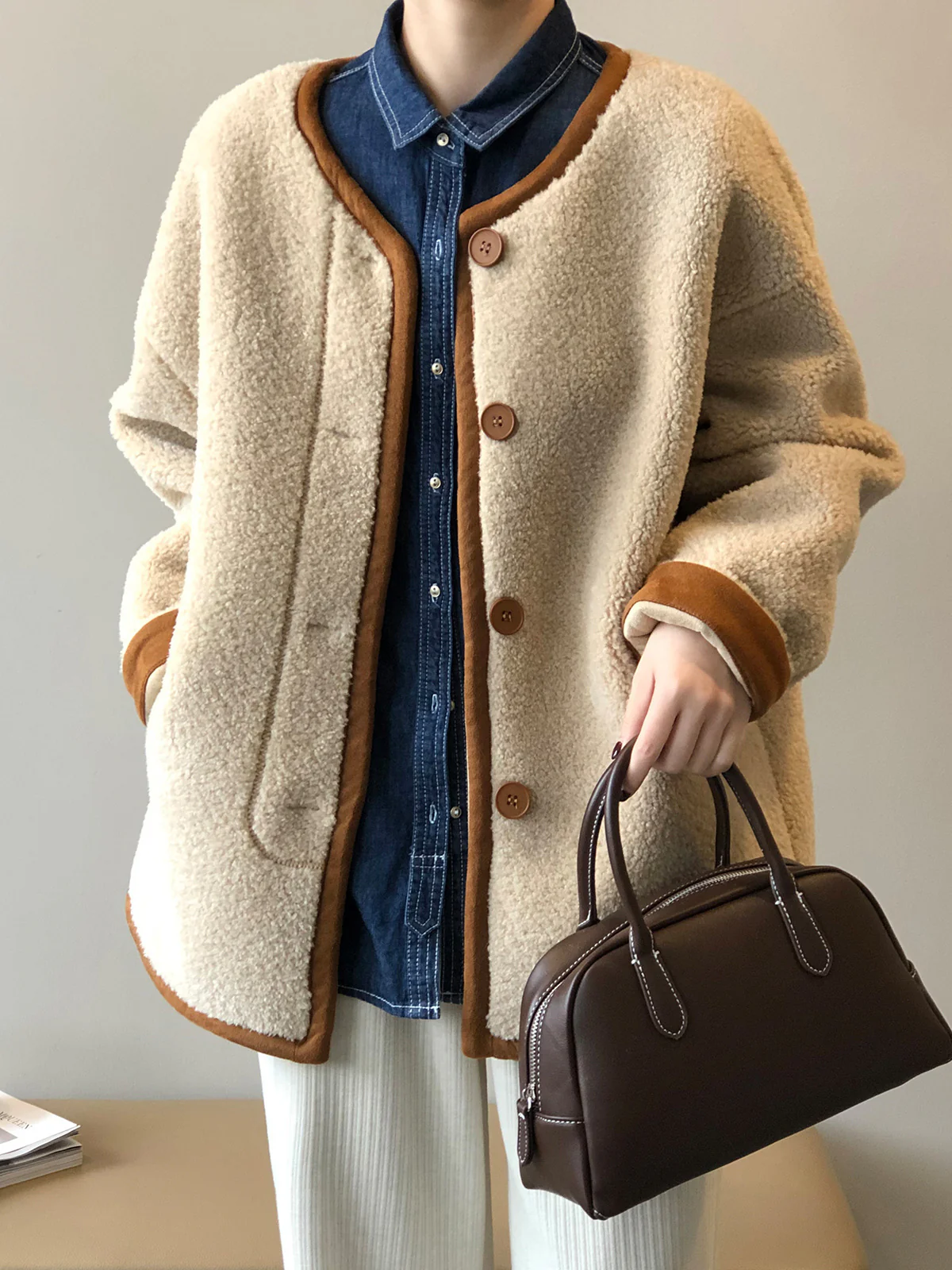 Ce manteau en laine d’agneau synthétique façon peluche offre un confort douillet incomparable. Il enveloppe la silhouette de chaleur tout en gardant un look moderne et tendance.