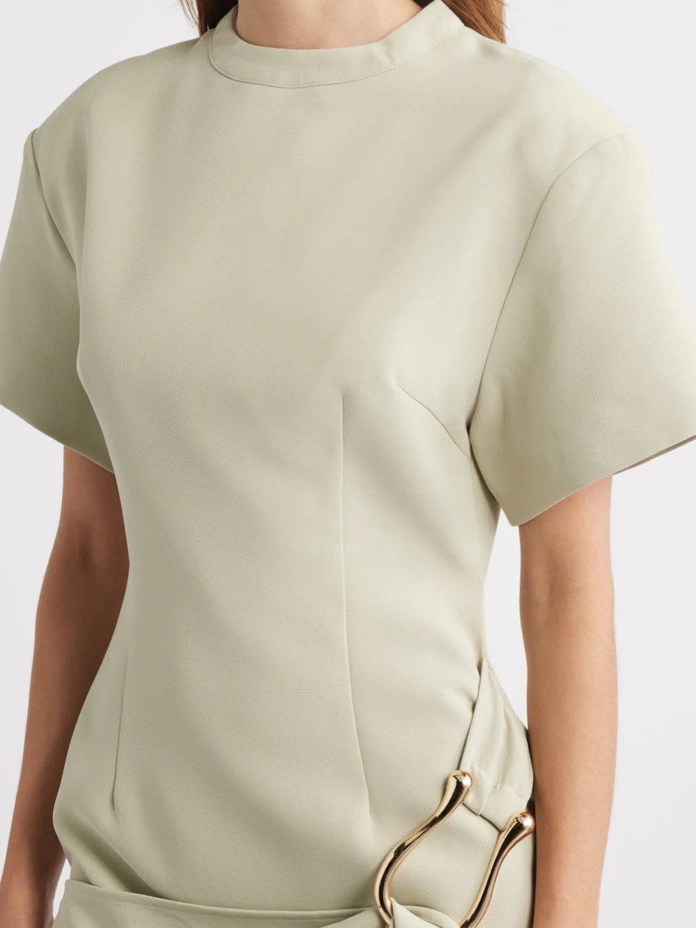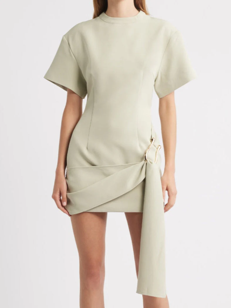 Mini-robe drapée à ceinture en matcha