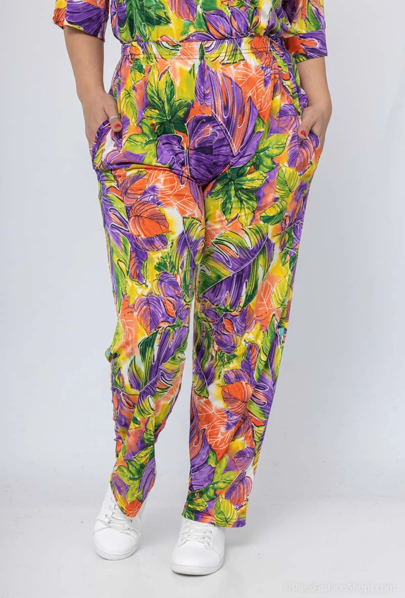 Ce pantalon s’accorde merveilleusement avec notre Top imprimé à Fleurs Fluide | Grande Taille | La Réunion – Courbes Divines de la même collection pour créer un ensemble coordonné qui ne manquera pas de vous faire remarquer.
