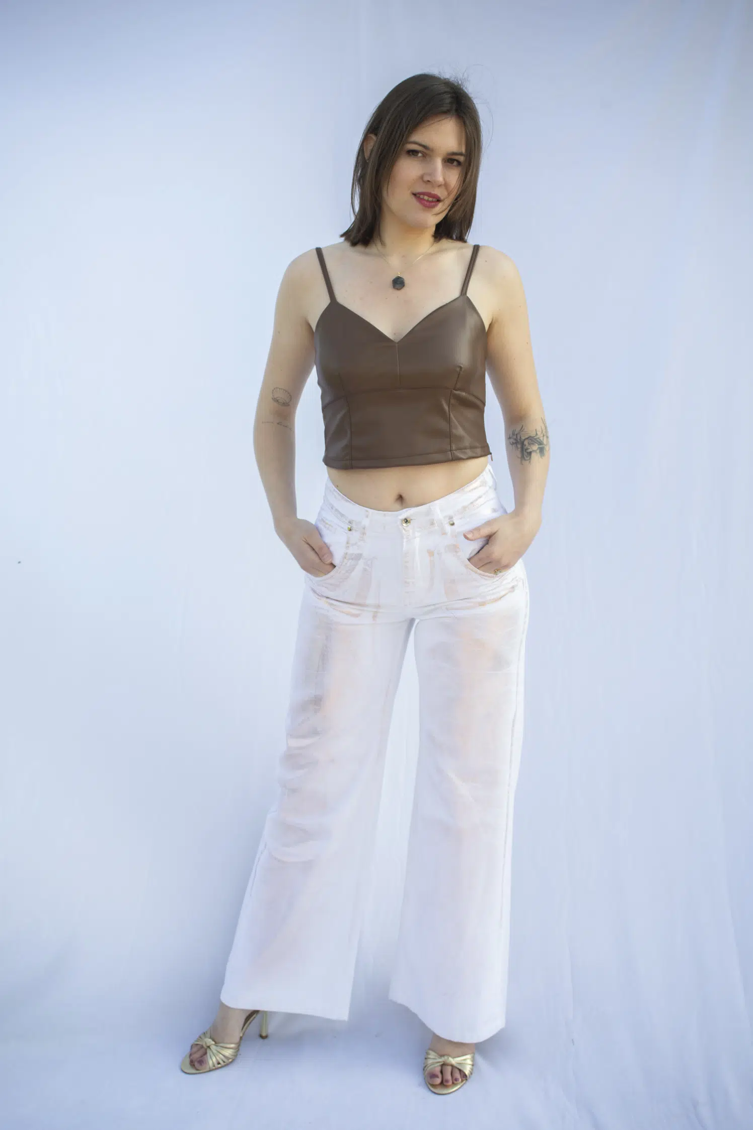 Éclat Contemporain avec Élégance • Le pantalon Paula se distingue par son allure sophistiquée et décontractée • Confectionné en coton pur, ce pantalon blanc affiche une texture lisse et une coupe évasée, promettant un confort absolu et une silhouette élancée • La taille haute cintrée met en valeur la forme naturelle, tandis que les détails métalliques lui confèrent un cachet moderne. Avec Cerises d’Amour, vous avez l’assurance d’avoir une garde-robe à la fois tendance, élégante, raffinée et super confortable par ce que vous êtes unique ! Guide des tailles
