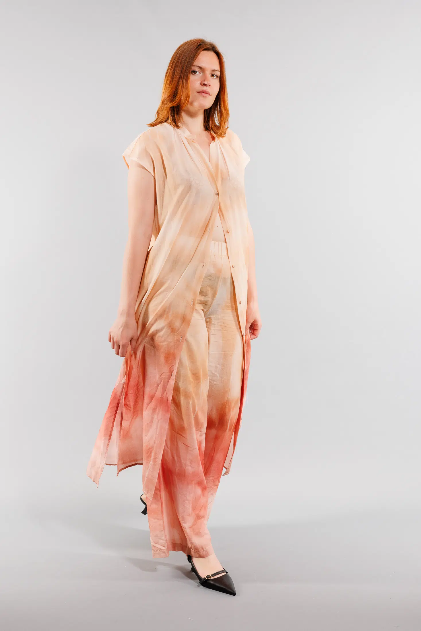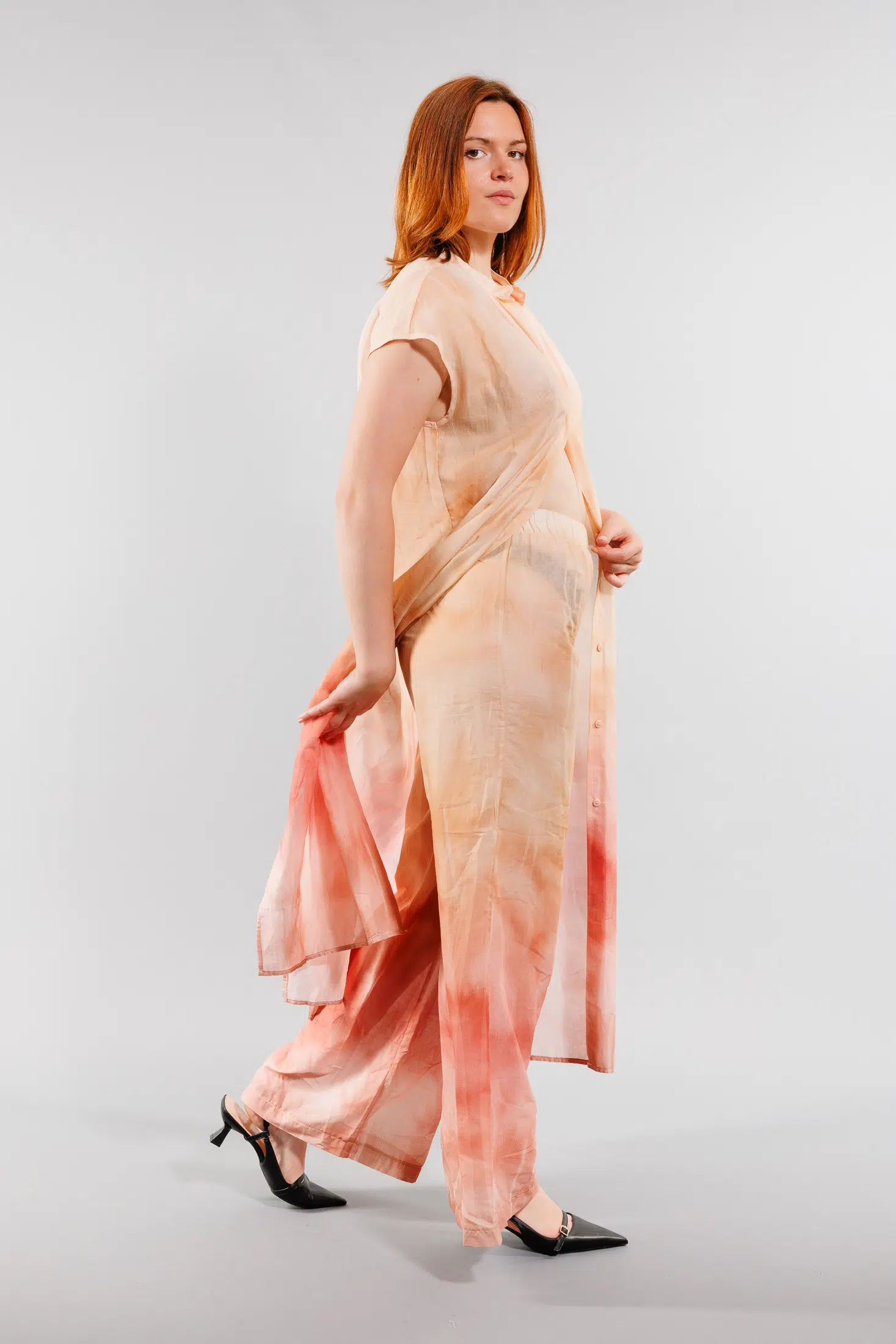 Pantalon Tye-Dye fluide et stylé • L’Élégance décontractée au naturel • Ce pantalon tye-dye en coton 100 % allie douceur, fluidité et originalité. • Sa coupe large et légère épouse les mouvements avec grâce, tandis que son dégradé orangé réchauffe la silhouette avec subtilité. • Parfait pour les journées d’été où confort rime avec allure, il se porte avec une aisance désarmante, quelle que soit l’occasion. Avec Cerises d’Amour, vous avez l’assurance d’avoir une garde-robe à la fois tendance, élégante, raffinée et super confortable par ce que vous êtes unique ! Guide des tailles