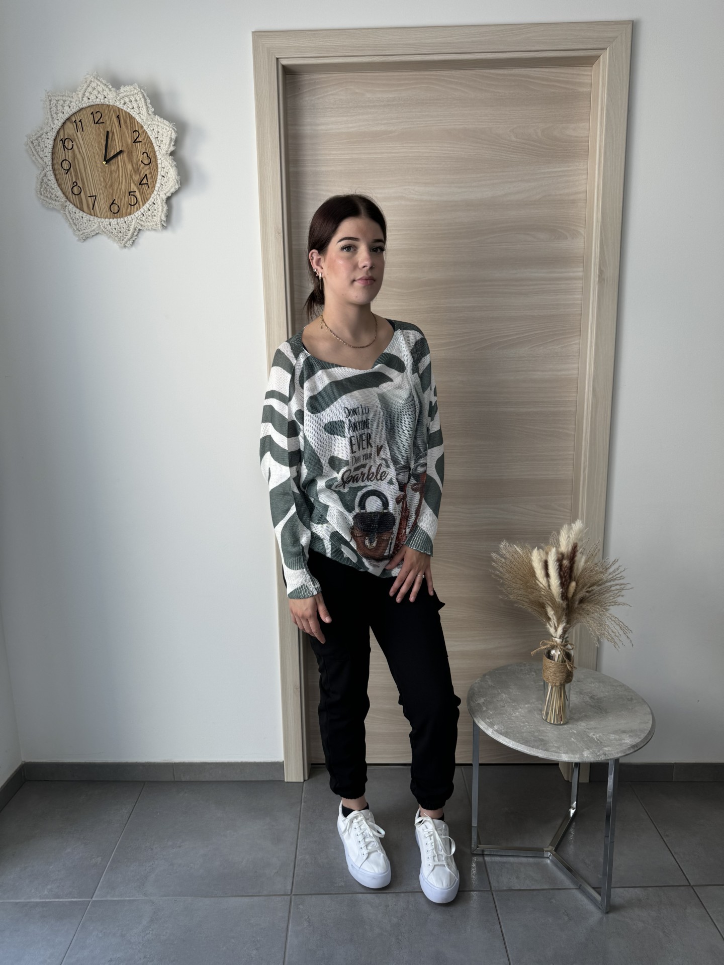 COMPOSITION : COTON 100% TAILLE : UNIQUE (36-44) LE MANNEQUIN MESURE 1,70M FABRICATION : ITALIE