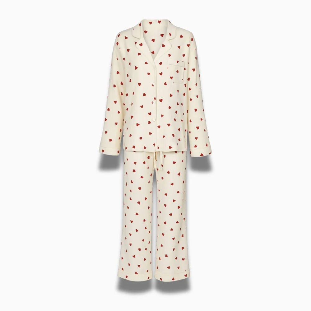 - Imprimé cœur : touche féminine et tendance, look homewear soigné.