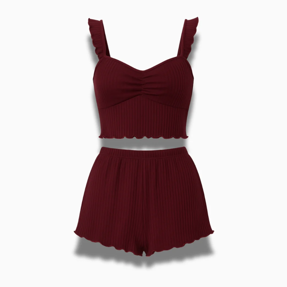 Pyjama Court Femme – Ensemble 2 Pièces et Confortable avec Top à Encolure Carrée