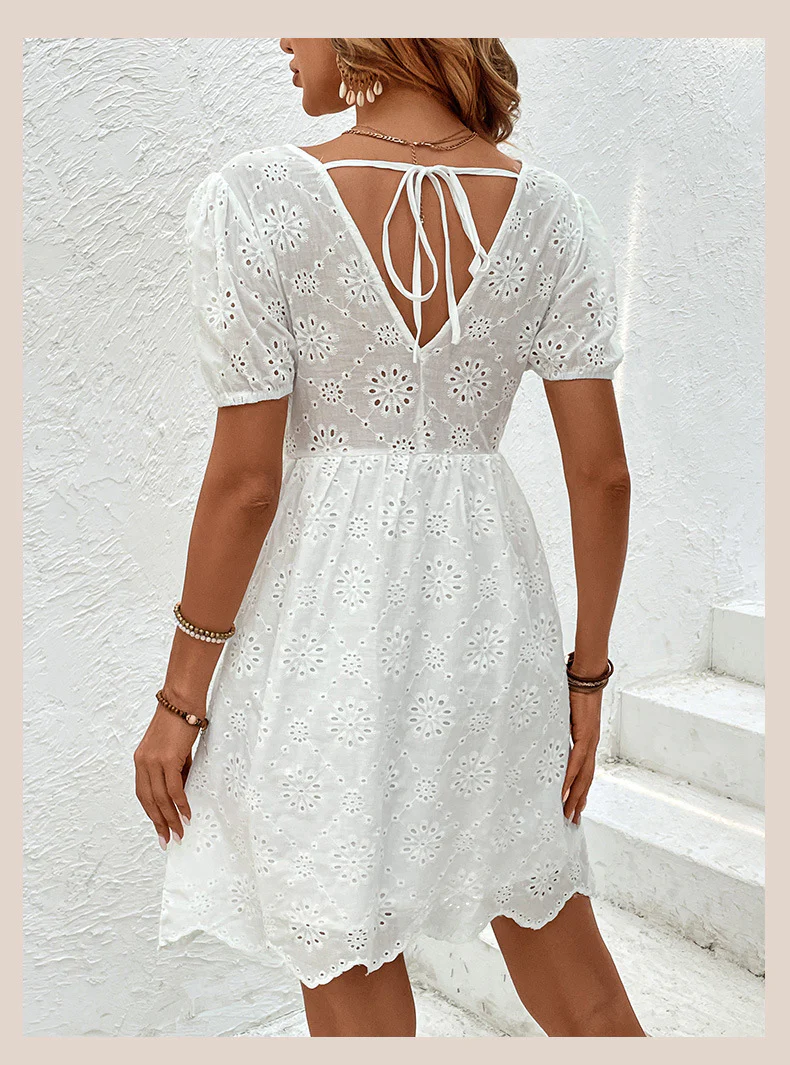 Robe Blanche Trapèze à Manches Courtes – Élégance & Confort au Quotidien