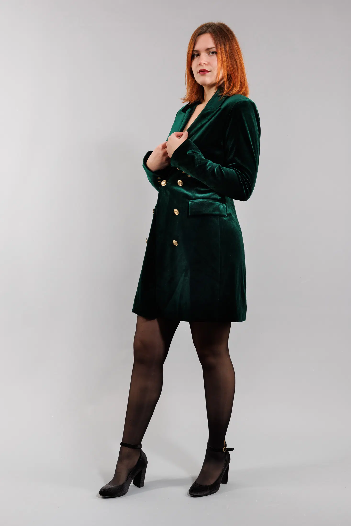 • Notre robe est dotée de boutons dorés qui contrastent avec le velours et lui donnent une touche d’éclat supplémentaire