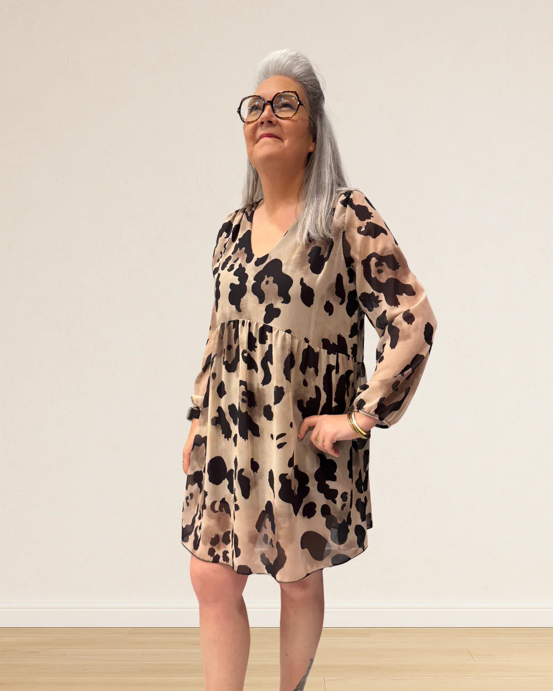 Cette robe courte en voile léopard c’est le parfait mélange entre féminité, légèreté et audace. Sa coupe fluide met en valeur la silhouette sans la marquer, tandis que son col V plongeant apporte la touche sexy juste ce qu’il faut.