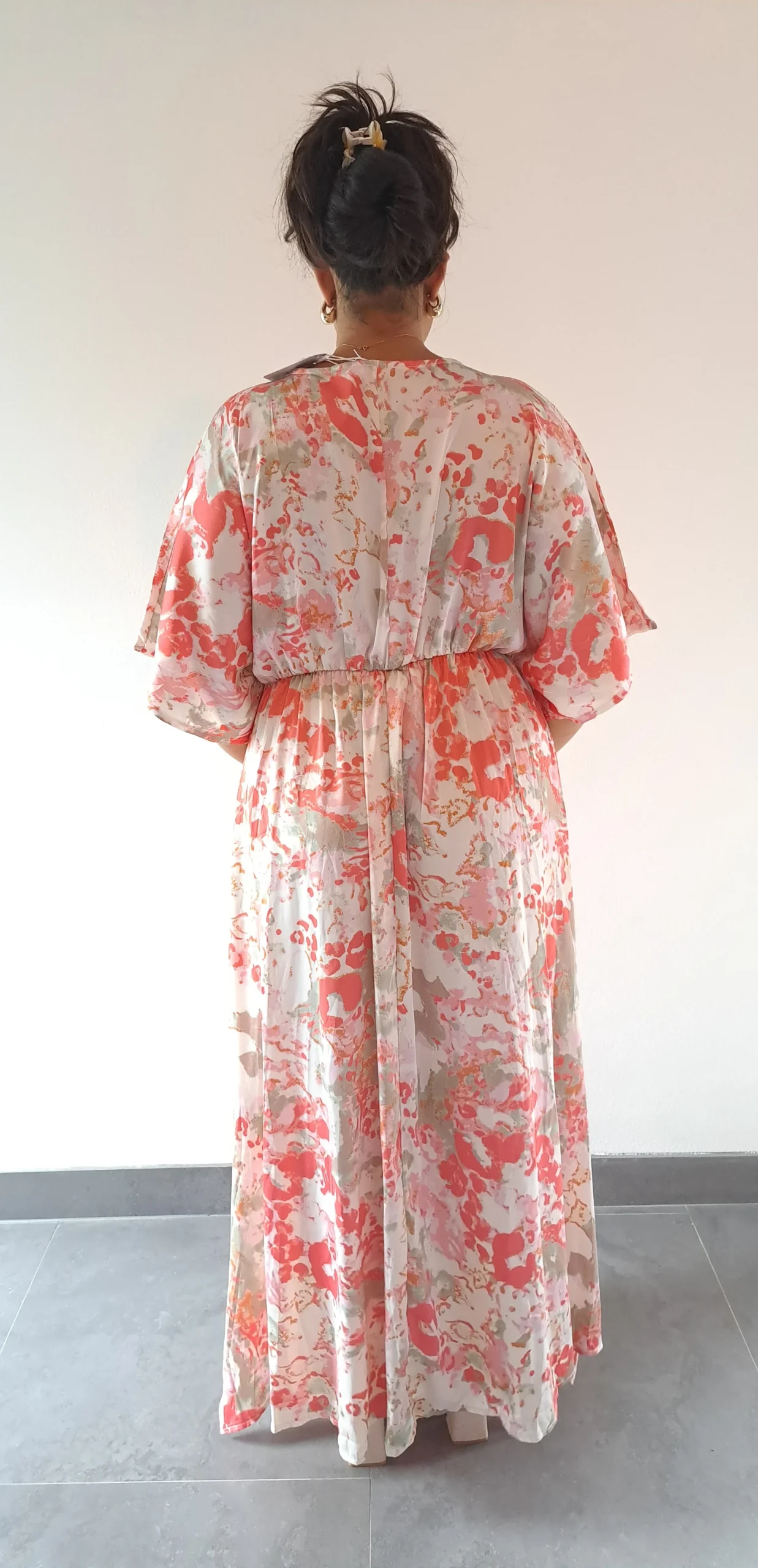 Robe longue légère satinée imprimé corail – Élégance estivale pour toutes vos cérémonies
