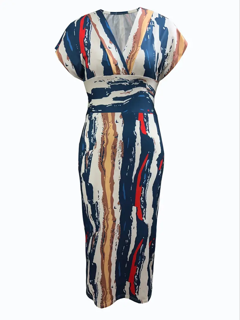 Robe moulante pour femmes en denim patchwork, longueur mi-cul, col en V à manches courtes