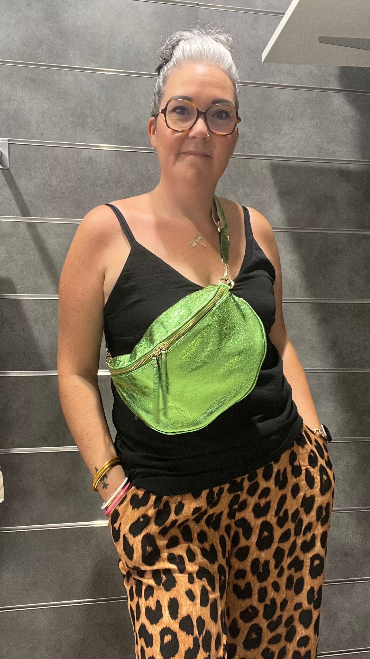 Le conseil d’Amandine : Cette banane en simili cuir irisée est l’accessoire parfait pour rehausser n’importe quelle tenue. Porte-la en bandoulière sur une robe d’été pour un look casual chic, ou avec un jean et un t-shirt pour une allure décontractée et stylée.