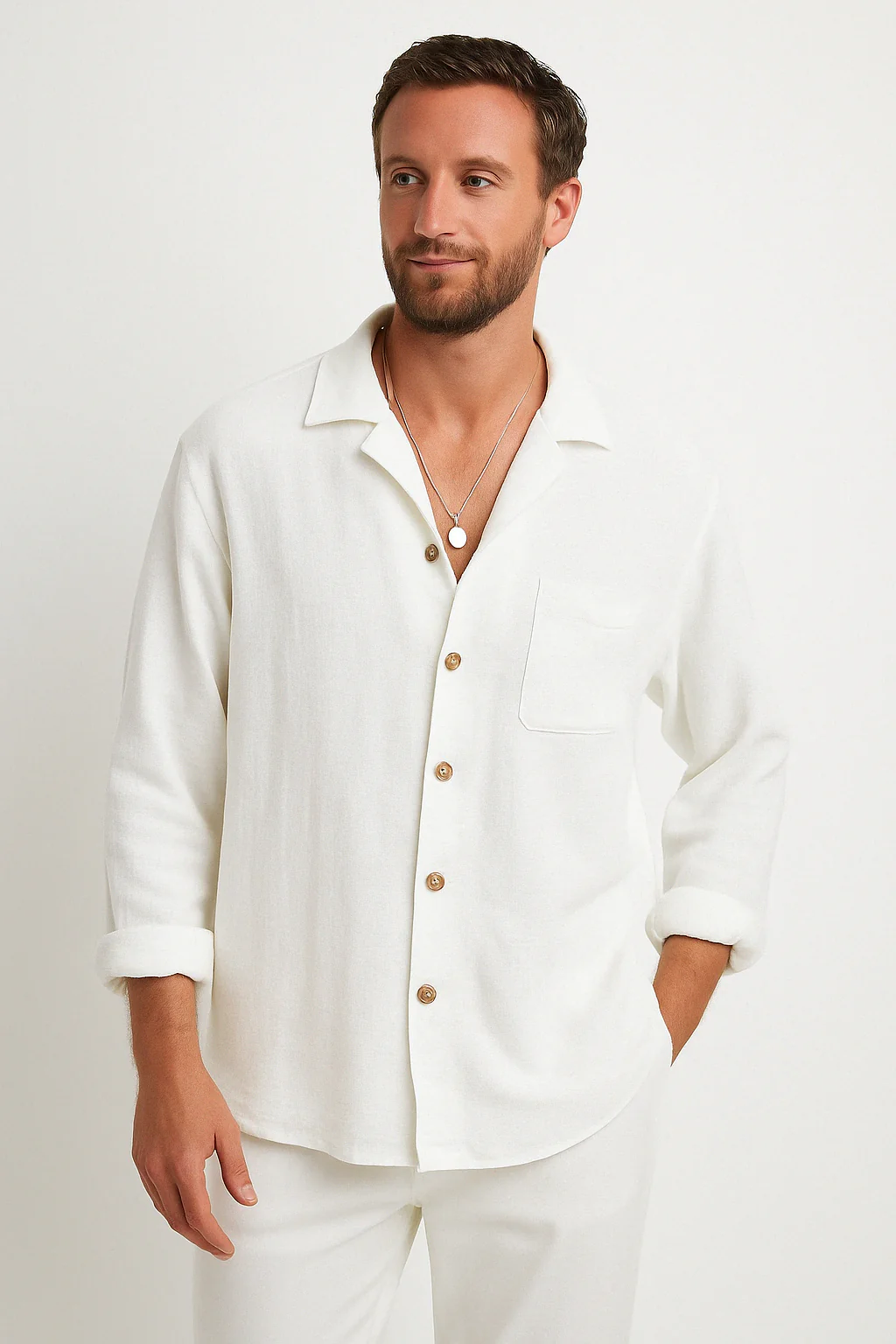 Chemise boutonnée pour homme – Mélange de coton et de lin – Coupe décontractée – Manches longues décontractées par Couture-Moda. Cette chemise à la coupe décontractée offre confort et style grâce à son mélange de coton et de lin respirant, ses manches longues et ses poches plaquées fonctionnelles, parfaites pour les tenues décontractées de tous les jours.