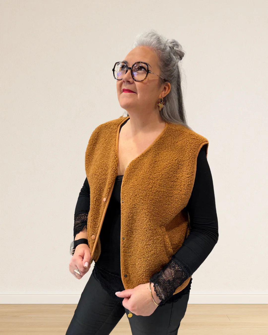Parfait pour réchauffer une chemise, un pull fin ou même une robe fluide, il ajoute la touche cosy et tendance à tous vos looks d’automne-hiver.