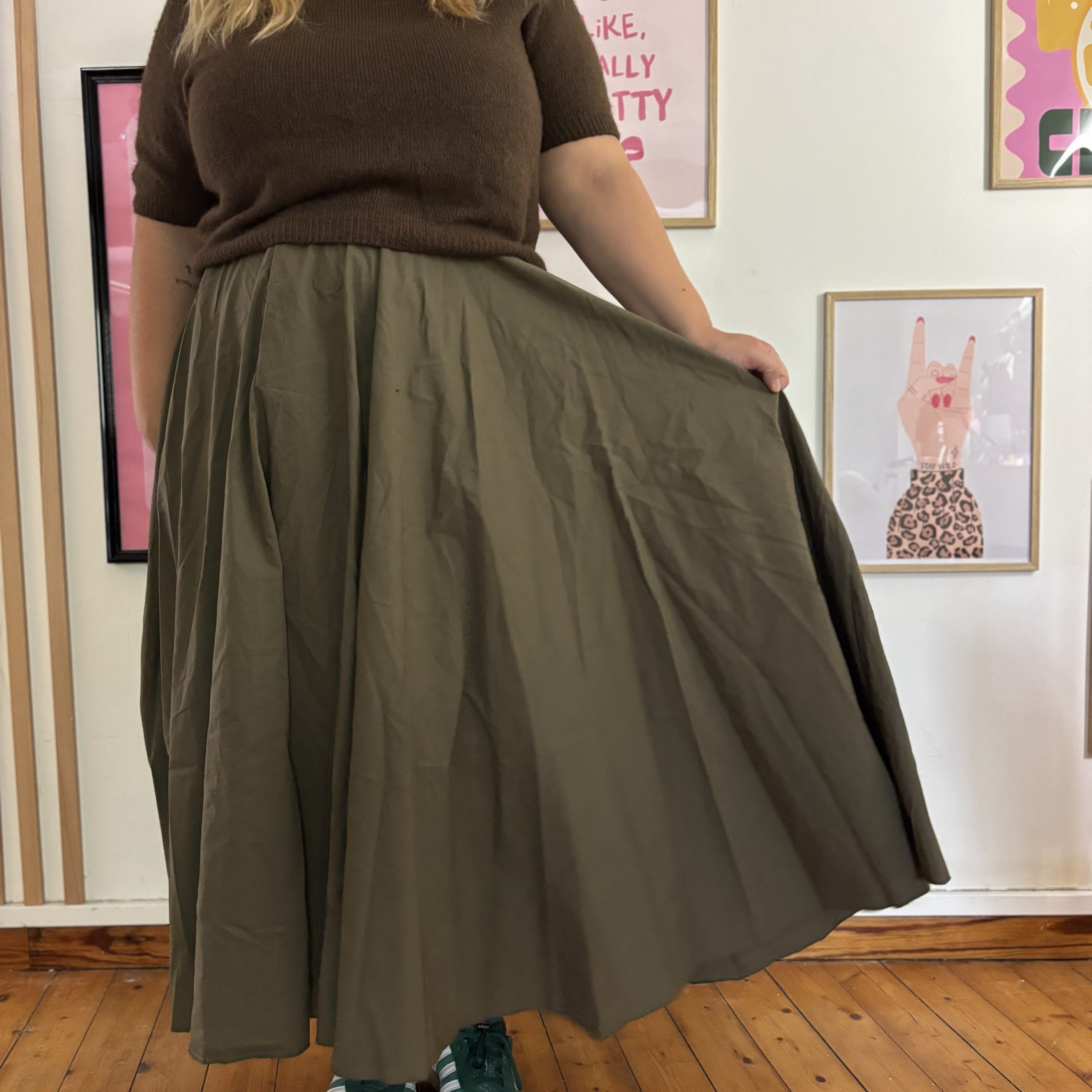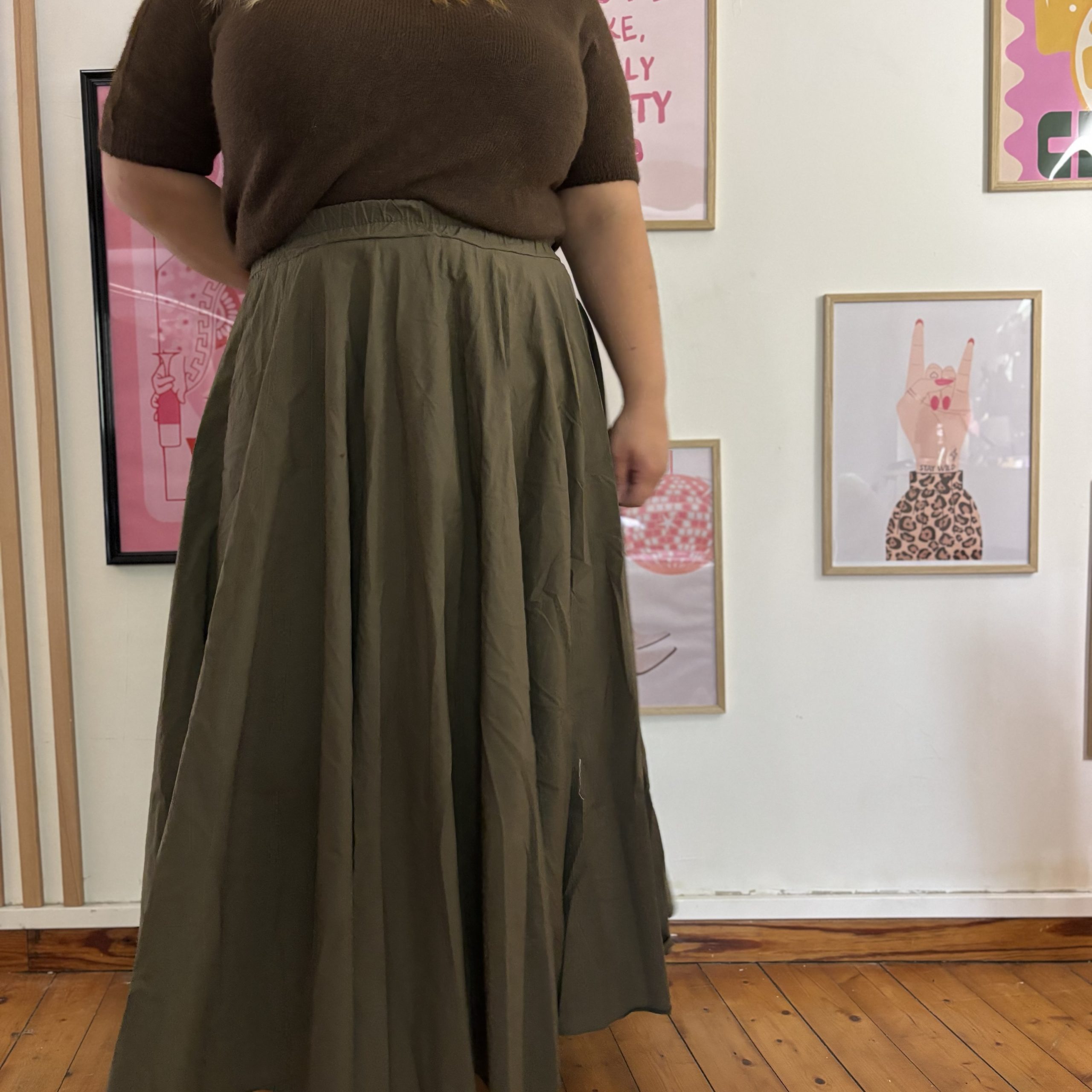 Adoptez le style casual chic avec cette jupe en pur coton olive, confectionnée en Italie pour la collection Automne/Hiver 2025/2026. Sa matière naturelle et respirante offre un confort optimal au quotidien, tout en garantissant une allure moderne et décontractée.