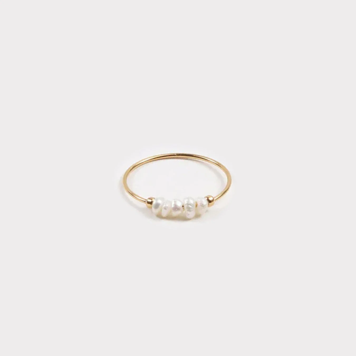 La bague, fabriquée avec soin et précision, se compose de cinq perles d’eau douce soigneusement sélectionnées pour leur éclat et leur qualité, créant une belle rangée qui scintille à la lumière.