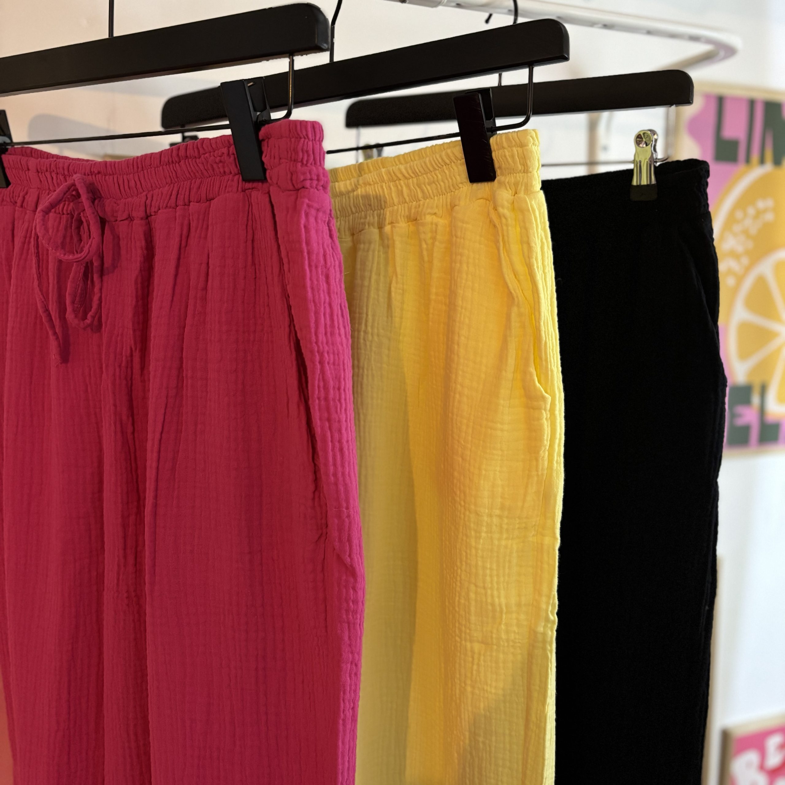 Pantalon large en coton, parfait pour un look décontracté. Taille élastique pour un confort optimal. Simple et chic, il se marie avec toutes les tenues. Idéal pour le quotidien ou les sorties. Une pièce indispensable dans votre garde-robe. TU = 42-48