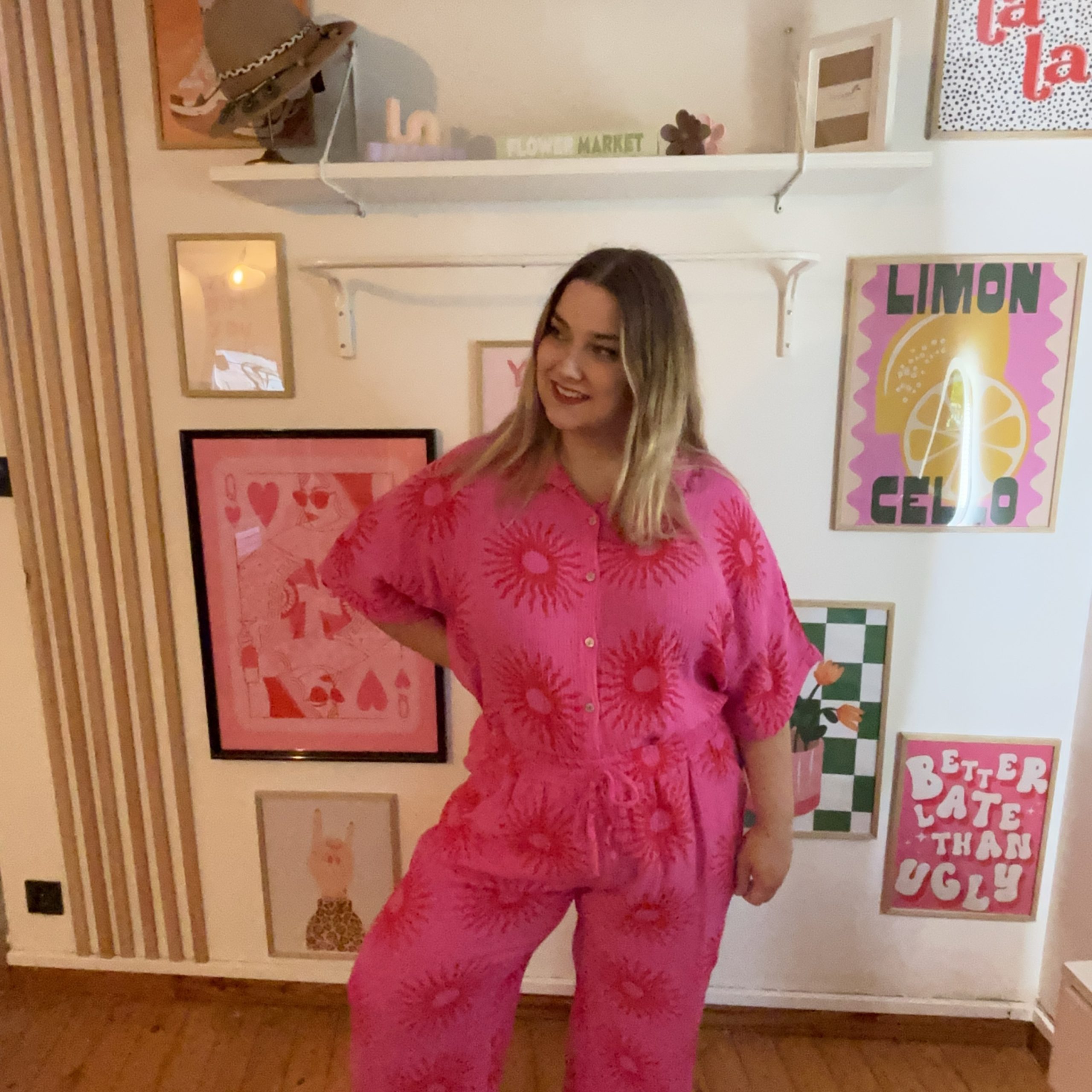 Léger comme l’été et doux comme un rayon de soleil, notre pantalon en gaze de coton rose est une invitation à la détente et au style. Orné de discrets motifs soleil en ton sur ton, il apporte une touche bohème et lumineuse à votre garde-robe.