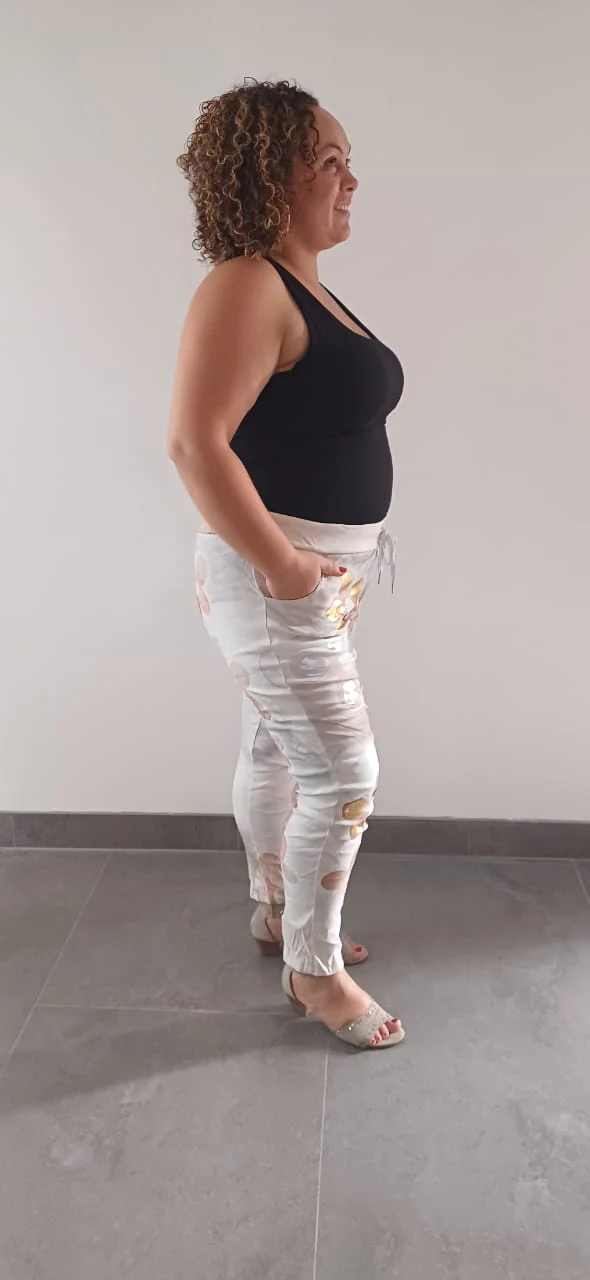 Ce n’est pas pour rien qu’on l’appelle « magique » ! Sa matière ultra-extensible épouse parfaitement votre silhouette des tailles 42 à 52, comme s’il avait été conçu spécialement pour vous. L’effet gainant est immédiat : il lisse les petites imperfections tout en vous laissant respirer. Les femmes qui l’ont essayé ne peuvent plus s’en passer – c’est le genre de pantalon qui transforme votre rapport aux vêtements.