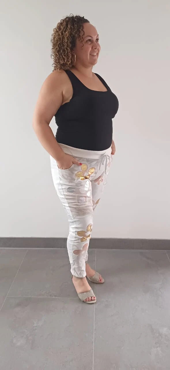 Pantalon Magique Grande Taille Stretch Fleuri – Confort et Élégance