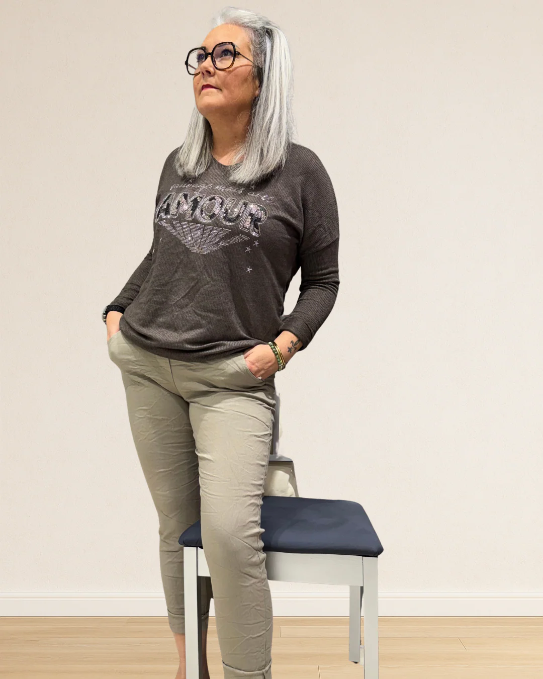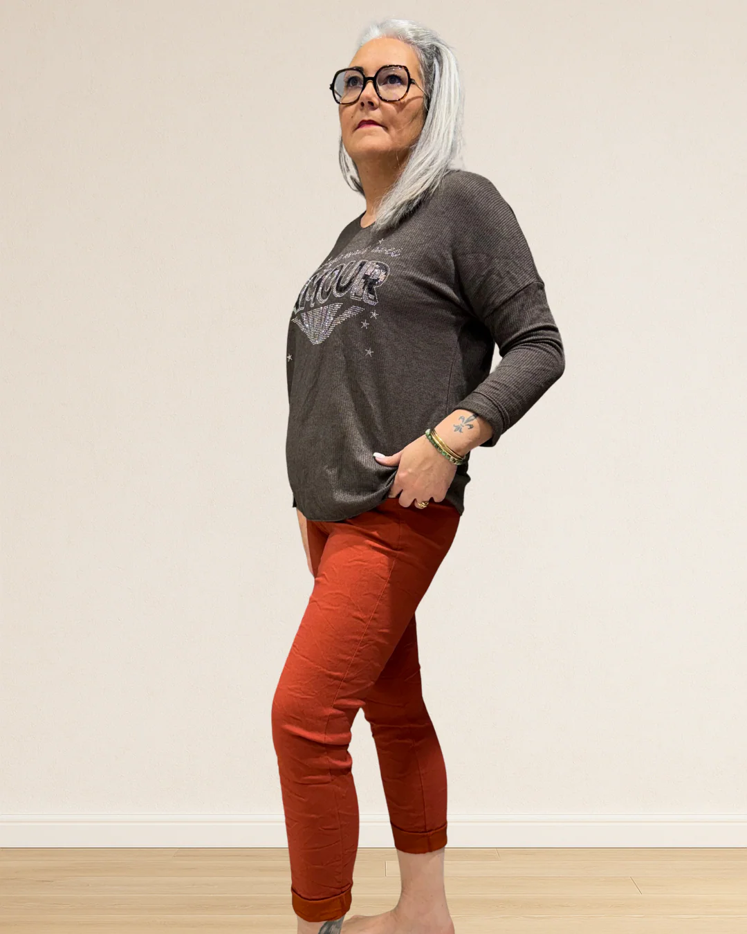 Associe JIM au pull MIMI pour un look féminin et sauvage , ou au pull PAUL pour un style chic et décontracté. Tu peux aussi le porter avec une chemise fluide et des bottines pour une tenue de bureau confortable et élégante .