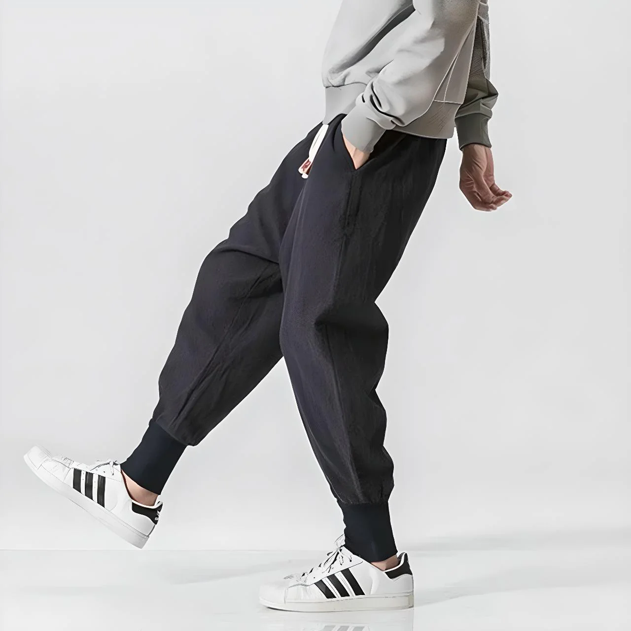 Le Jogging Japonais Homme Tobi Zen s’inspire de l’esthétique tobi — ces genres portés par les ouvriers japonais pour sa coupe ample et pratique. Il incarne la fusion parfaite entre streetwear contemporain et culture japonaise.
