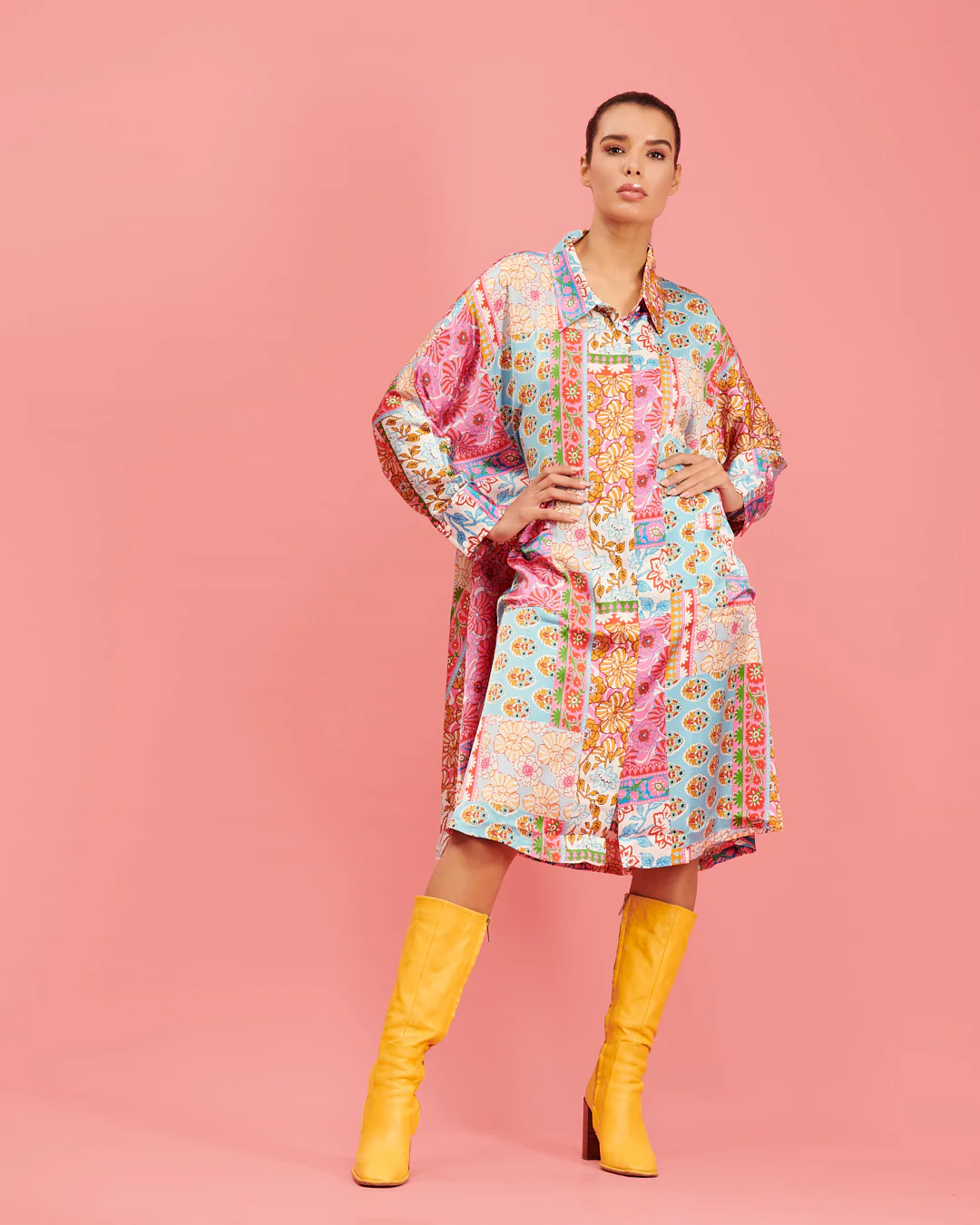 Style : Robe chemise d’un design pur et contemporain avec son imprimé et fermeture avec bouton