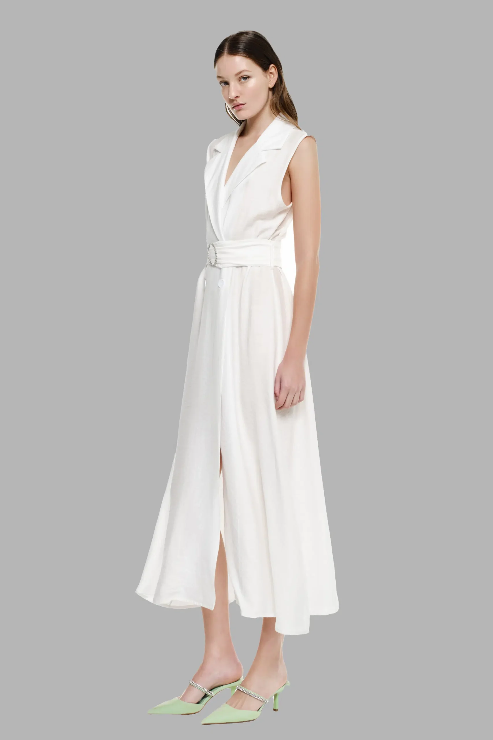 Quelle que soit la façon dont elle est portée, cette robe blanche avec ceinture à la taille est un choix sûr pour toutes celles qui recherchent une tenue à la fois simple et sophistiquée.