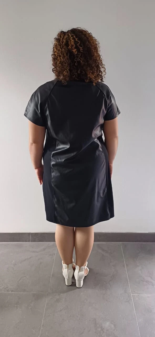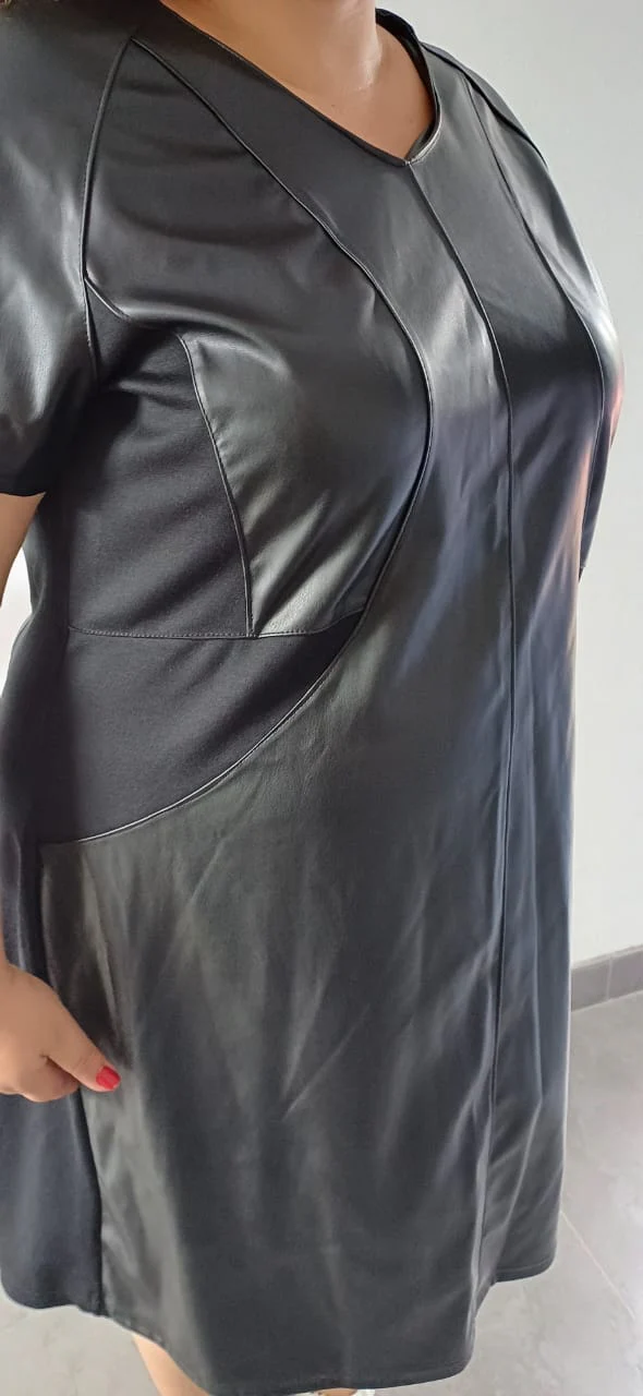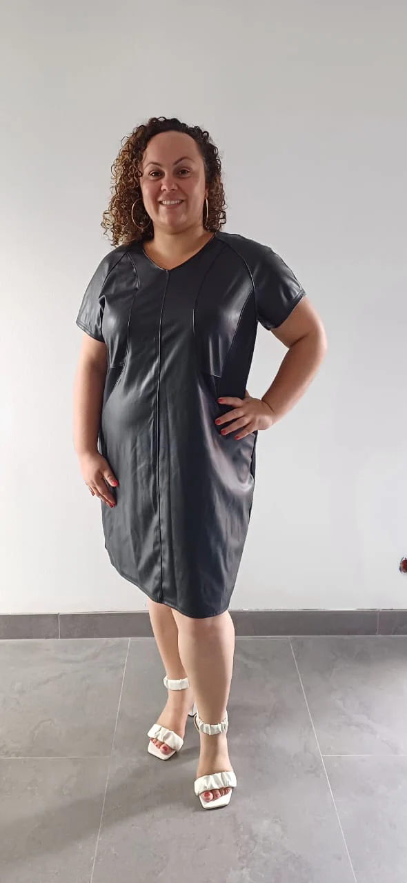 Fabriquée en France avec un souci du détail exemplaire, cette robe en simili cuir noir grande taille représente le parfait équilibre entre confort quotidien et élégance intemporelle.