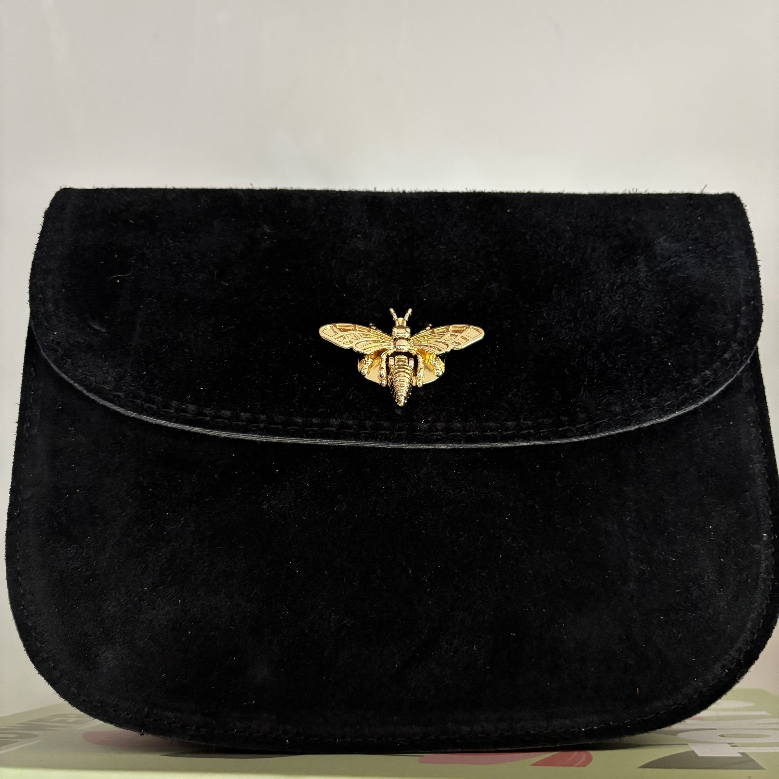 Le sac « Maya » en daim noir bandoulière combine élégance et praticité. Son format compact et sa texture douce en font l’accessoire idéal pour un look chic au quotidien.