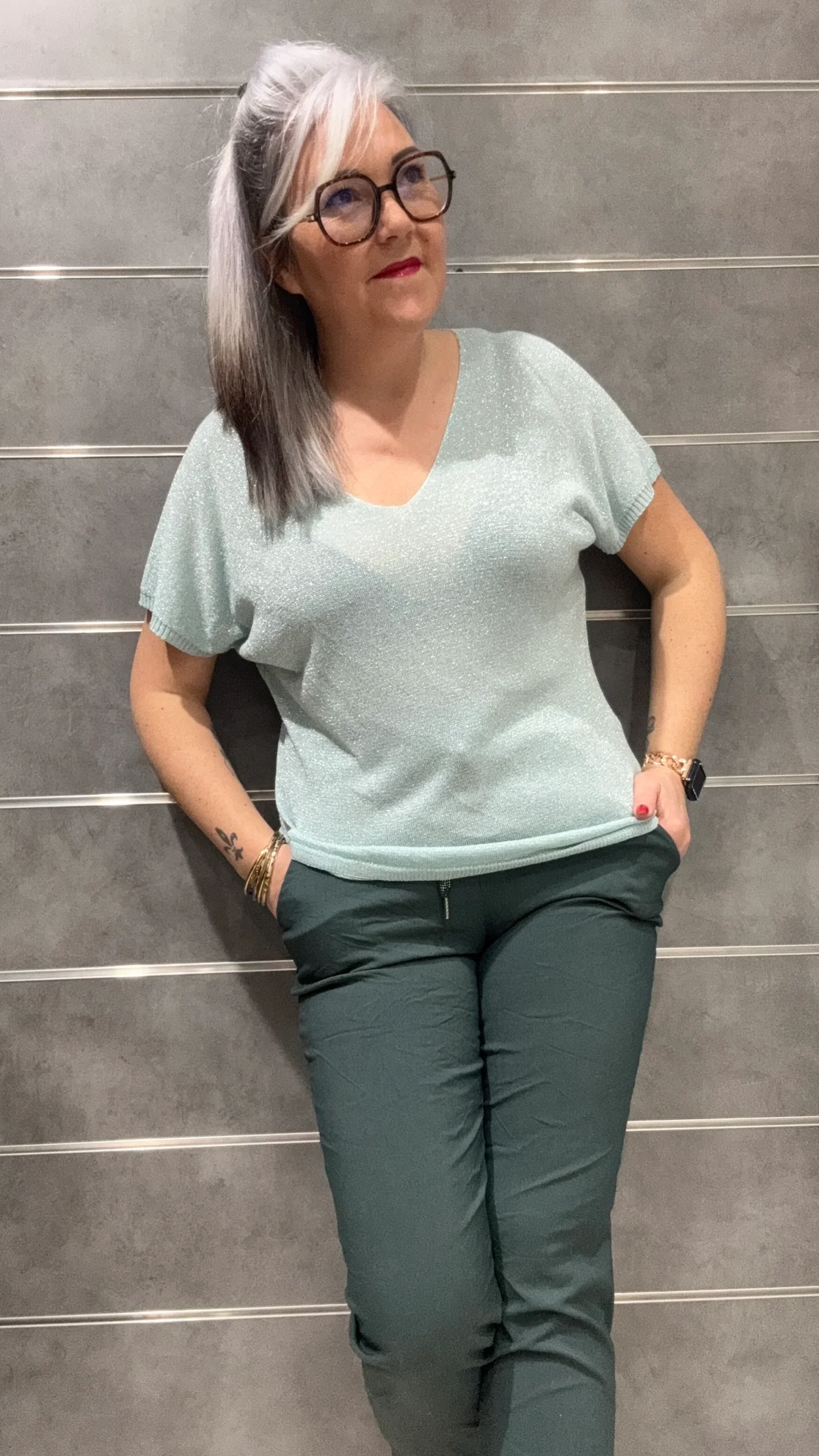 Brille tout en légèreté avec ce tee-shirt col V aux fils de lurex argenté !