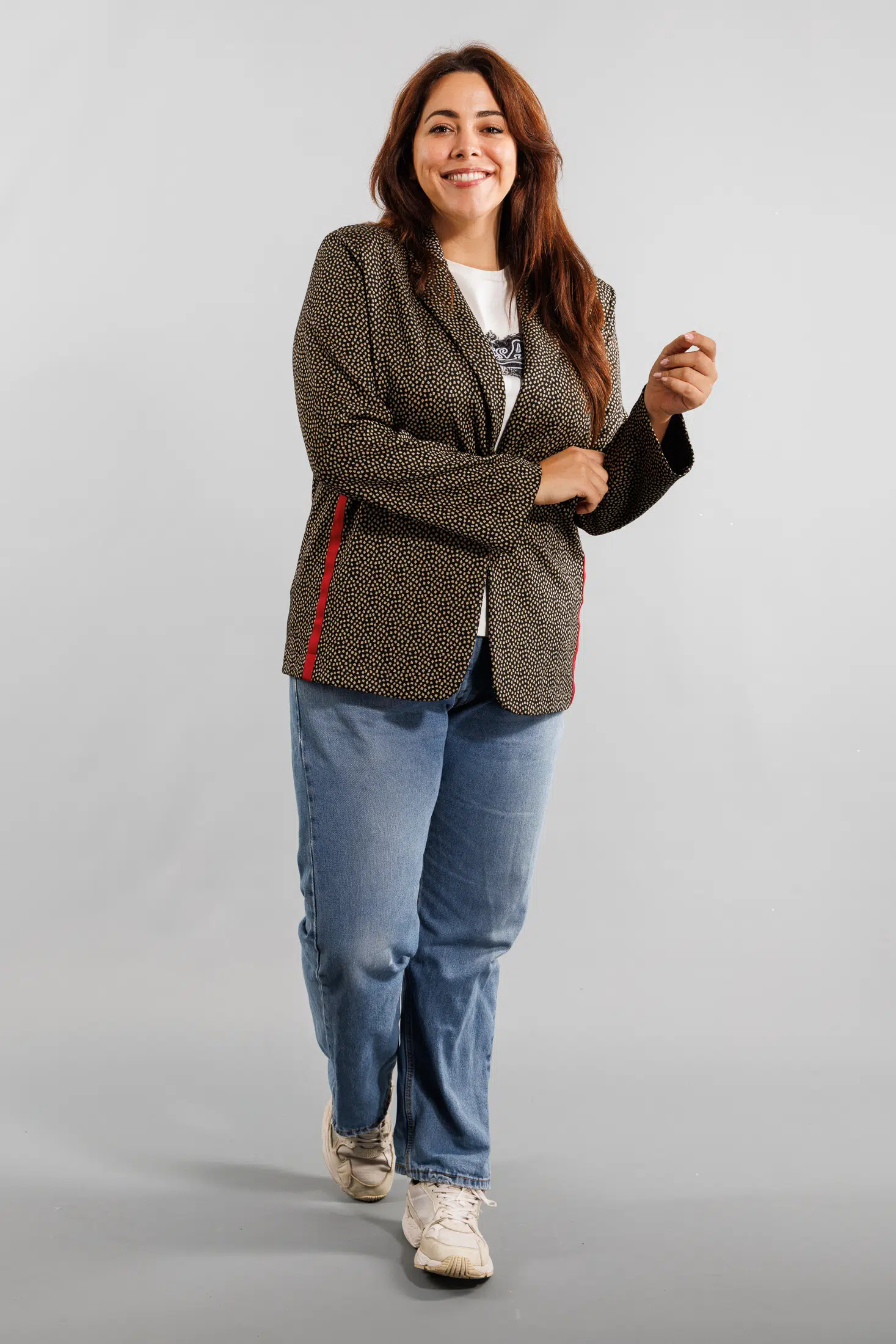 • Cette veste à pois avec une touche de rayures contrastées est parfaite pour celles qui aiment allier originalité et confort