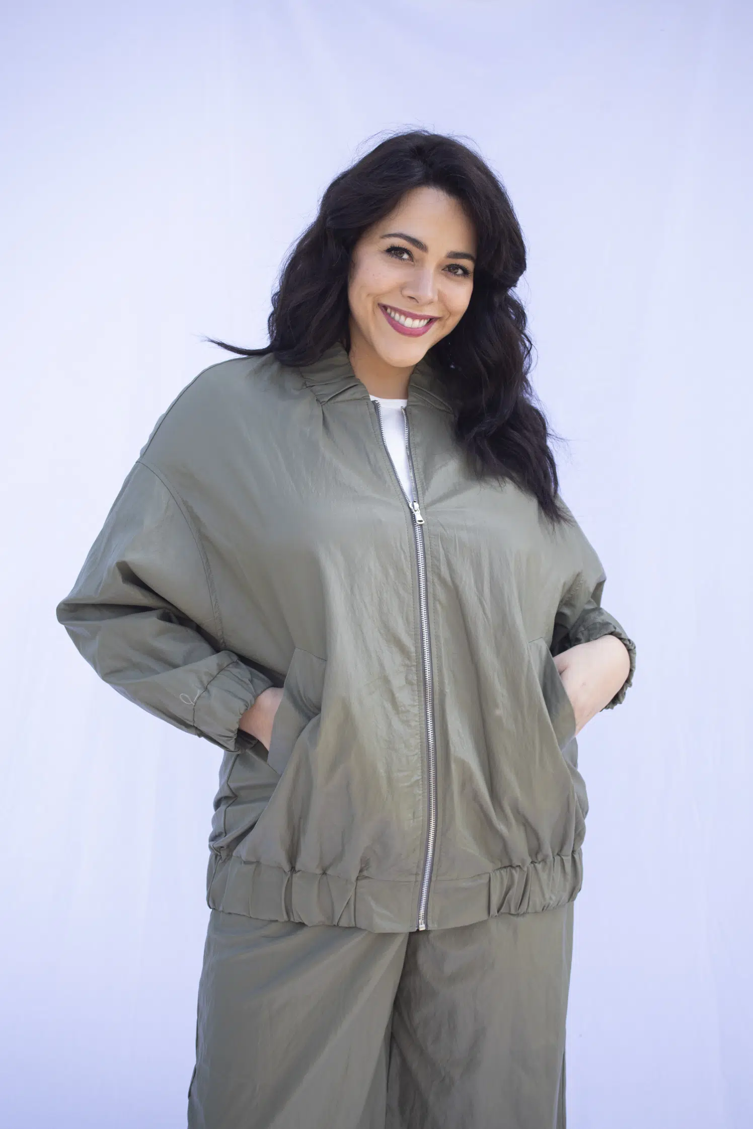 • Sa fermeture éclair solide et ses poignets élastiques promettent confort et aisance, tandis que sa teinte discrète et sa silhouette ample s’adaptent avec grâce à votre morphologie